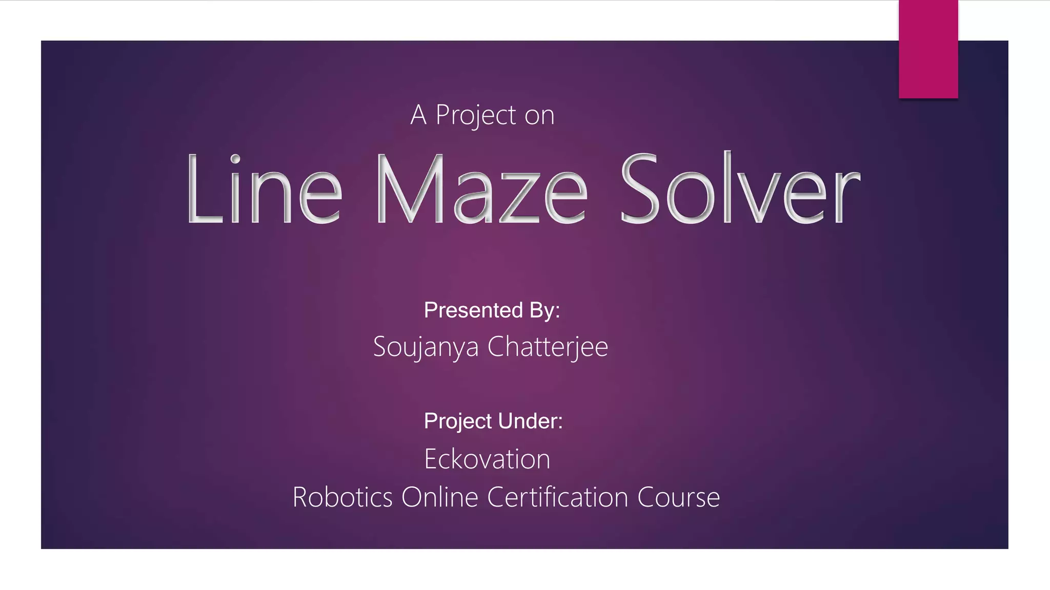The document outlines a project on building a line maze solver robot using an Arduino microcontroller, infrared sensors, and a motor driver. It includes a detailed background on maze-solving robotics, the components used, the building procedure, and an algorithm (left hand rule) for navigation. The robot successfully solves open loop line mazes but is noted to struggle with closed loop mazes, with insights for future improvements included.