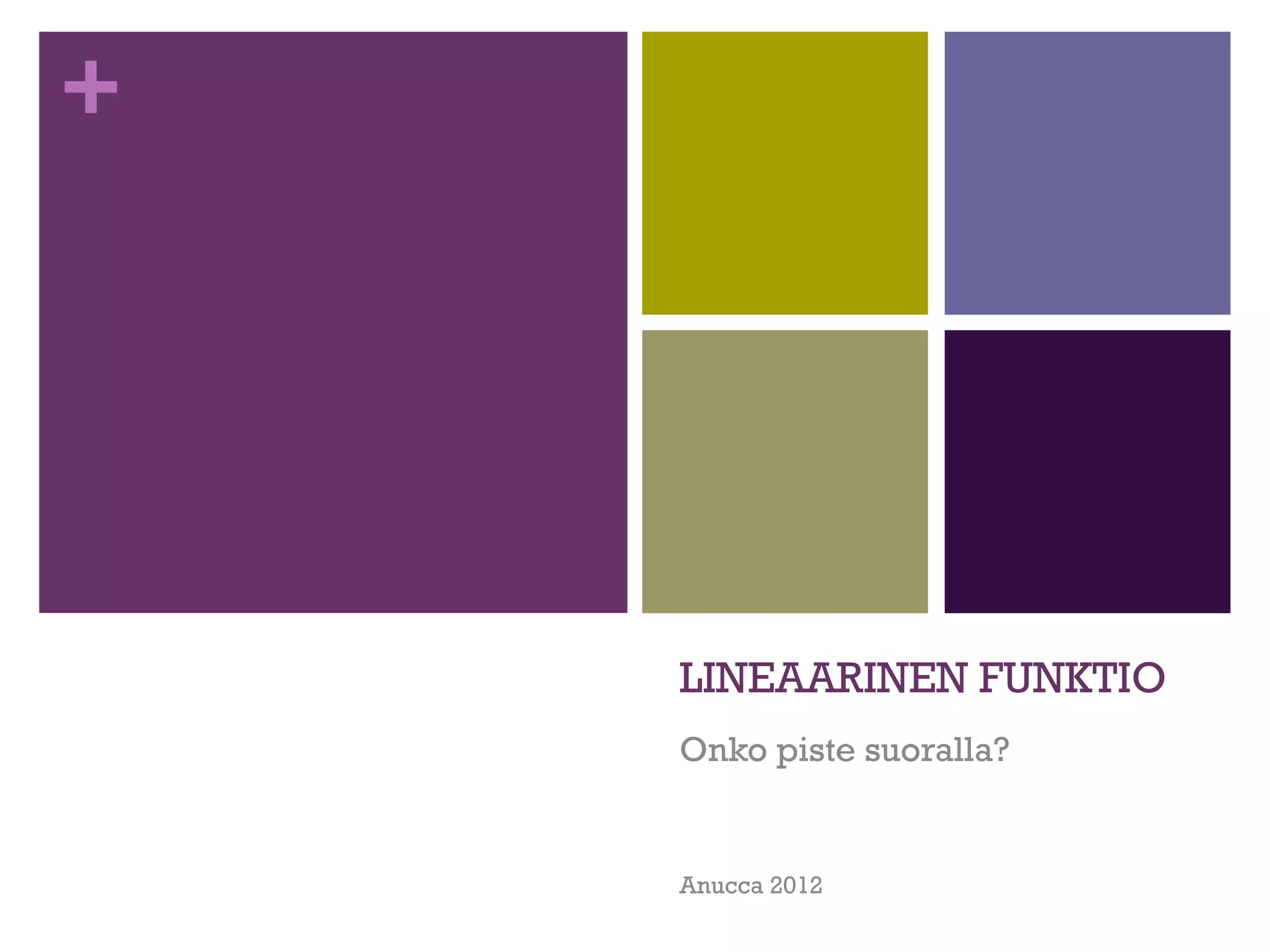 y = 22 +1 = 5 EI! Piste (2,6) ei ole suoralla