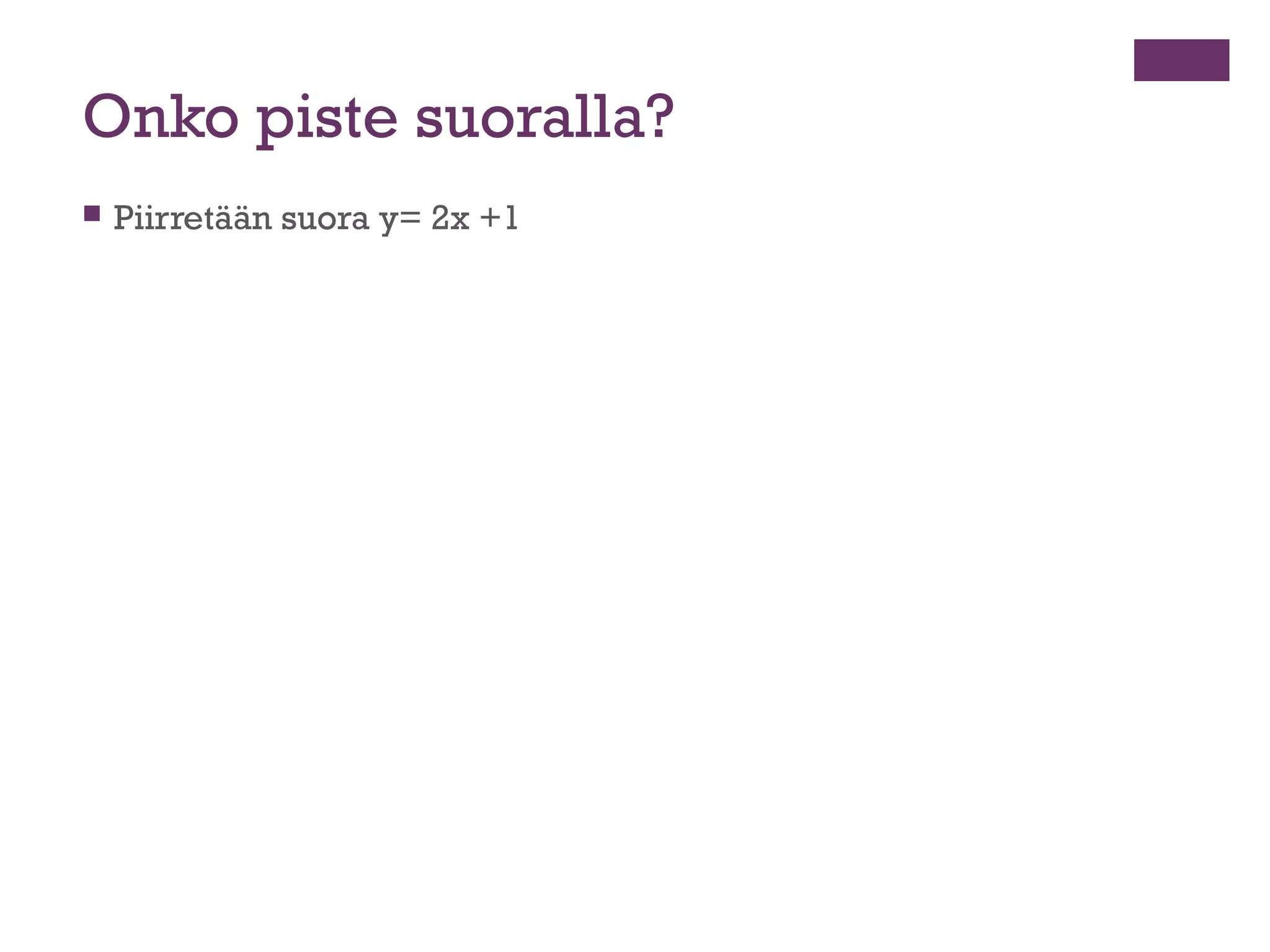 y = 21 + 1 = 3 OK! Piste (1,3) on suoralla