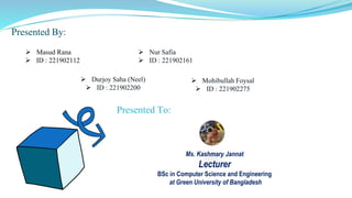 The document is a project presentation on linear algebra and vector analysis, presented by students at Green University of Bangladesh. It defines linear algebra as the study of lines, planes, and vector spaces, and vector analysis as dealing with quantities having both magnitude and direction. Additionally, it discusses polynomial functions, including leading terms and coefficients.