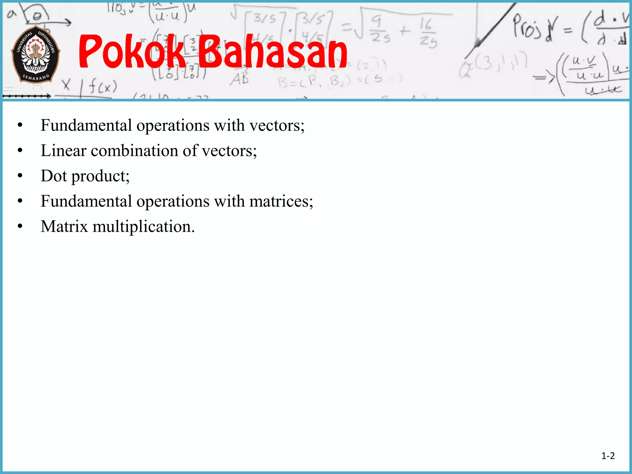 1. Definisi vektor dan operasi-operasi dasar seperti penjumlahan dan perkalian skalar terhadap vektor