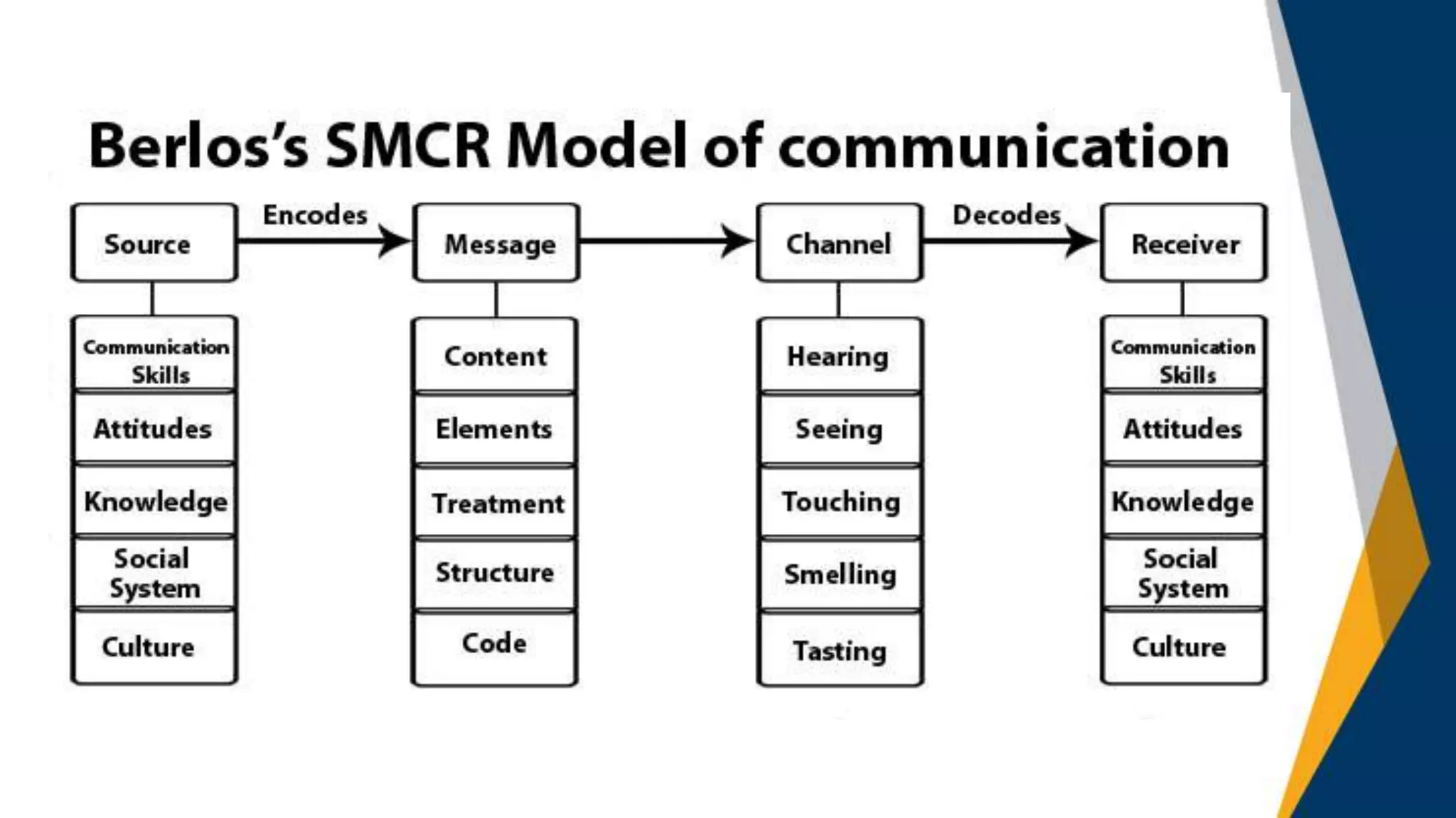 The linear model of communication describes one-way communication from a sender to a receiver without feedback. It has four key elements: a source that creates a message, a channel to deliver the message, the message itself, and a receiver of the message. Several classic models of linear communication are described, including Aristotle's model of public speaking, Lasswell's model examining who says what through which channel to whom with what effect, and Shannon-Weaver's model highlighting the role of encoding, sending, and decoding messages with the potential for noise. While linear communication is practical for mass media, it is limited by the lack of feedback and ability to convey multiple simultaneous messages.