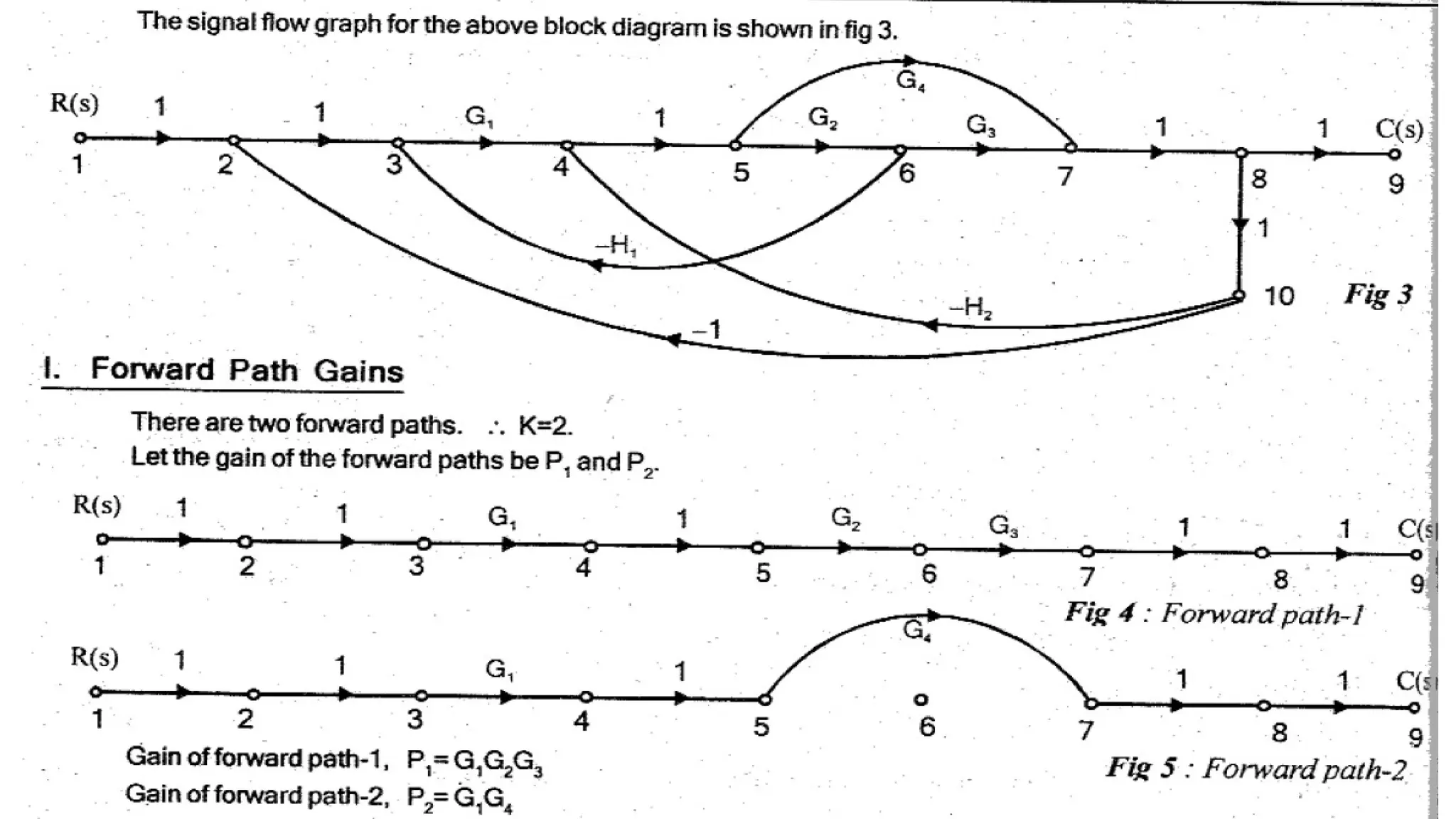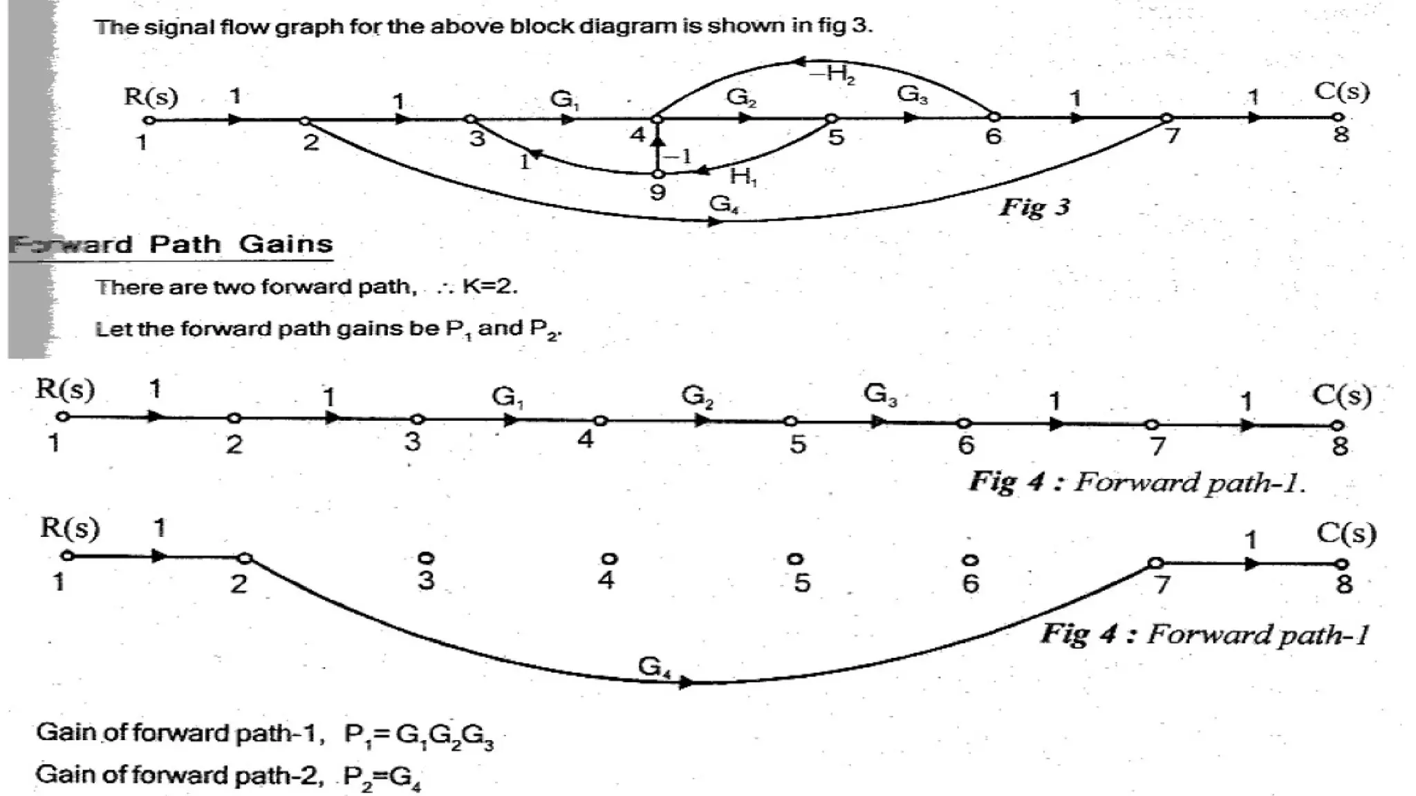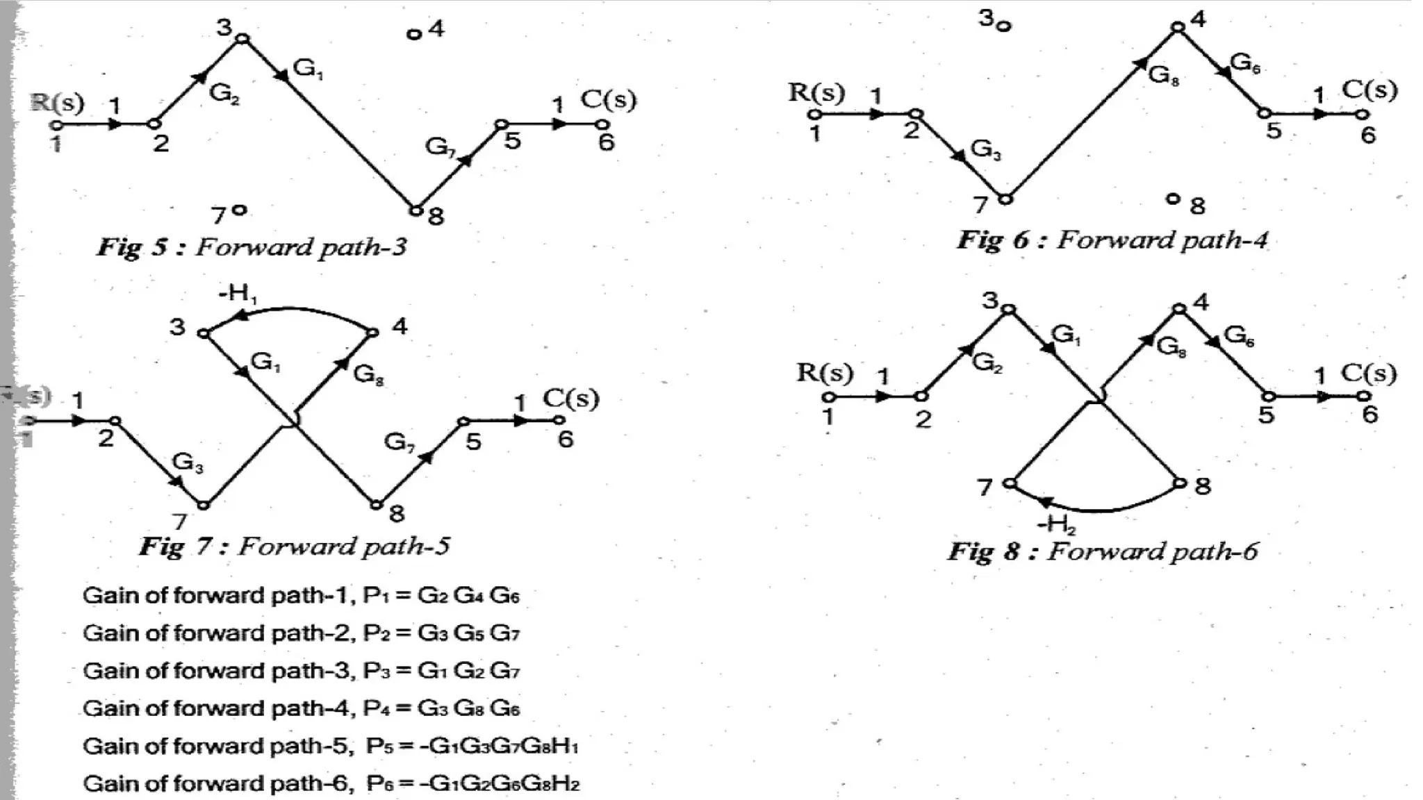 4. Draw the feed forward paths b/w various nodes and mark the gain of feed forward path