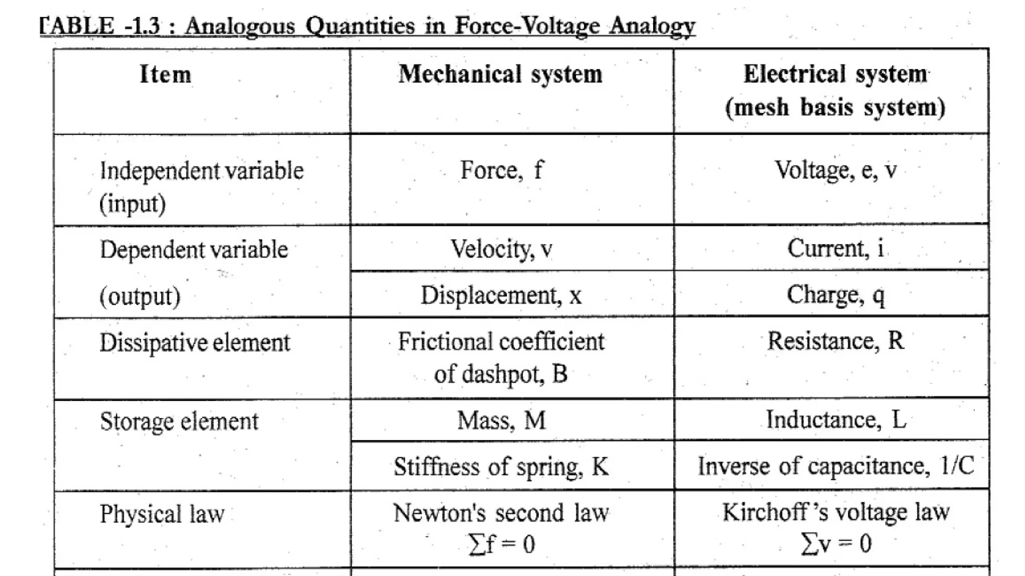 • The output velocity in mechanical system is analogous to either current or voltage in an