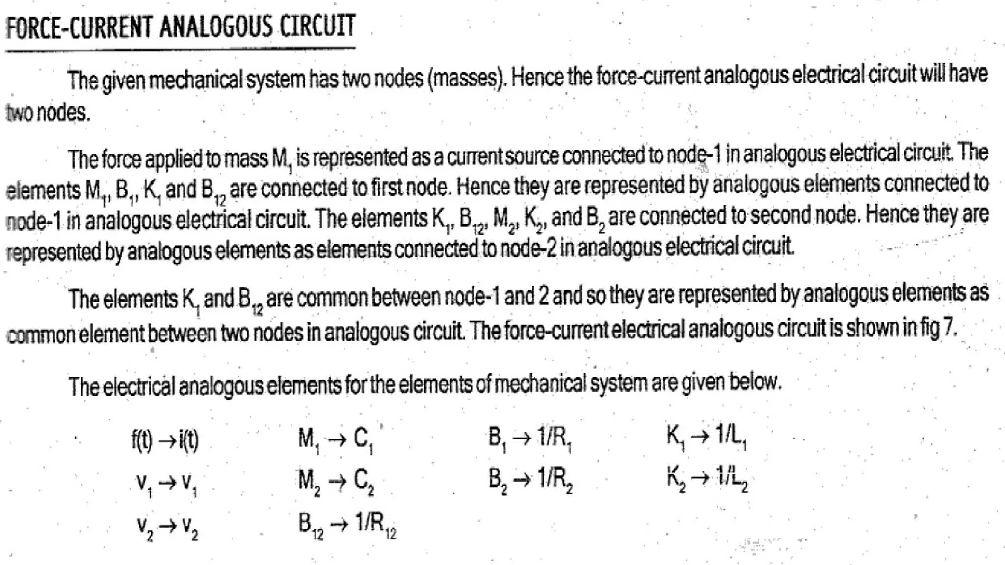 used in modelling mechanical systems are analogous to resistance, inductance and