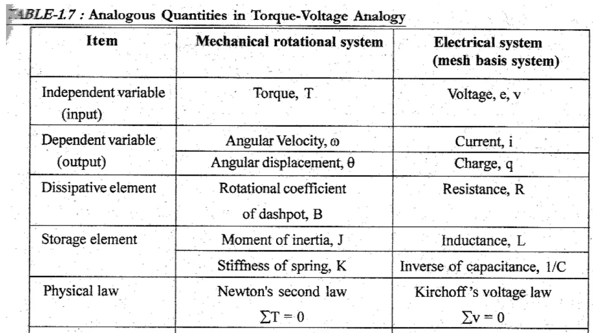 • The i/p torque in mechanical system is analogous to either voltage or current sourse
