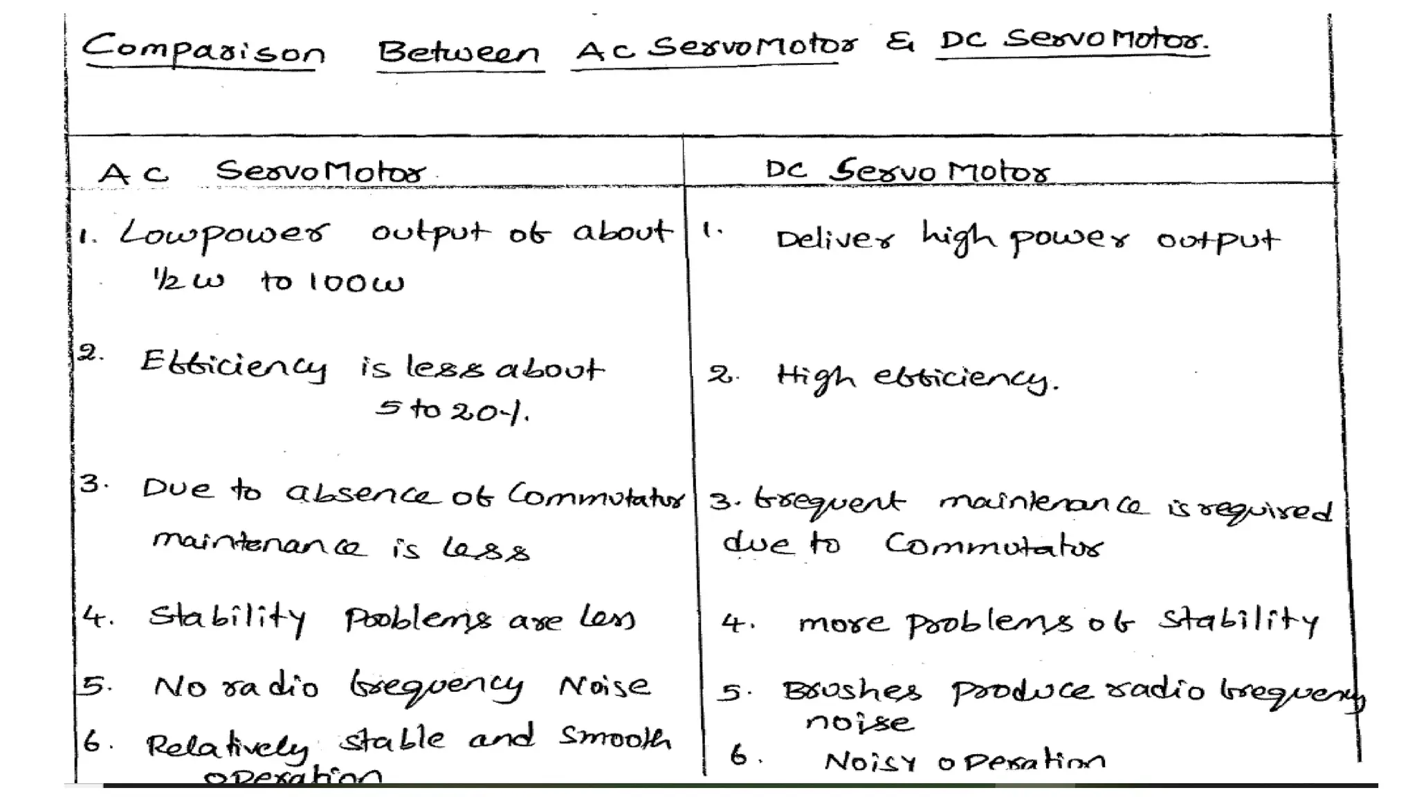 • The output of AC servomotor varies from fraction watts to few hundred watts.