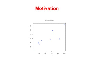 The document discusses linear regression machine learning models. It describes modeling data using a linear Gaussian distribution and estimating the model parameters using maximum likelihood or Bayesian methods. Bayesian estimation avoids the overfitting problems of maximum likelihood estimation by implicitly penalizing models that overfit the data. However, Bayesian methods can still be affected by using an incorrectly specified model.