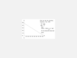 2. The document provides an example problem of determining production levels to maximize profit. It demonstrates formulating the problem as a mathematical model and solving it graphically and with the simplex method.