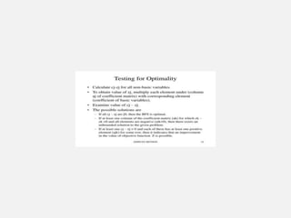 The document summarizes key concepts regarding linear programming problems. It discusses: