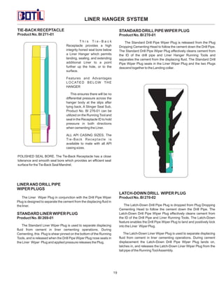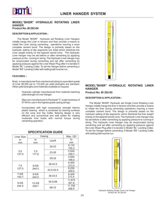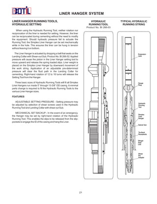 The document provides an index and descriptions of various liner hanger system products, including: