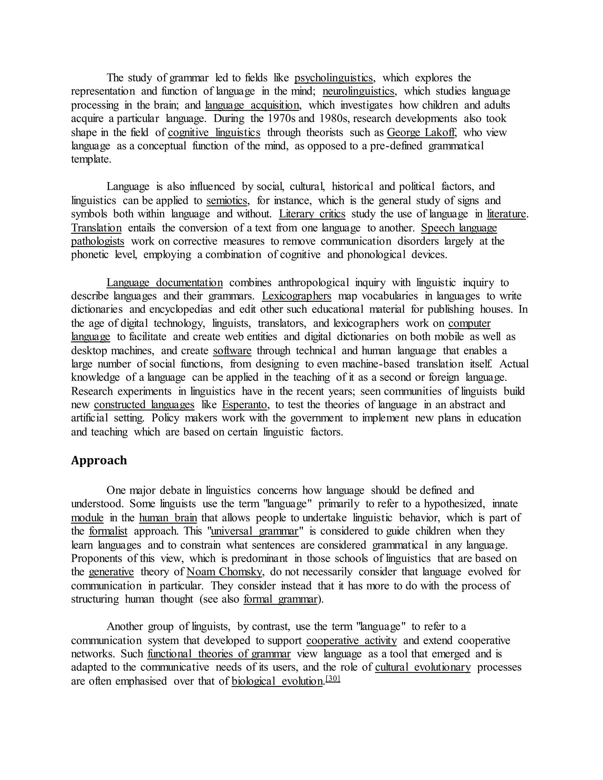 The document discusses the linguistic approach to teaching, which uses a child's native language as an associative tool to help learn new words and spelling patterns. It then provides a high-level overview of the field of linguistics, including the scientific study of language form, meaning, and context. Some key areas covered include phonetics, semantics, pragmatics, grammar, and sociolinguistics.