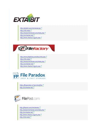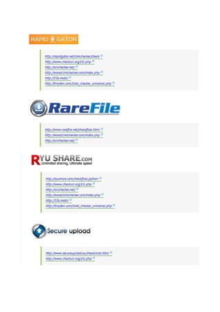 This document provides two reference links to websites that can be used to quickly check if file hosting links are working or dead without having to manually check each link. The referenced sites allow for bulk checking of file hosting links to determine their status in a fast and efficient manner.
