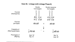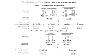 This document discusses genetic linkage and mapping techniques. It defines linkage as genes failing to assort independently if they are located near each other on the same chromosome. Crossing over during meiosis allows for genetic recombination and independent assortment of genes. Linkage analysis techniques are used to construct genetic maps showing gene positions. The recombination frequency between two genes indicates their genetic distance, while LOD scores and Haldane's mapping function translate recombination fractions into distances in centimorgans. Genetic maps have limited resolution and accuracy compared to physical mapping techniques.