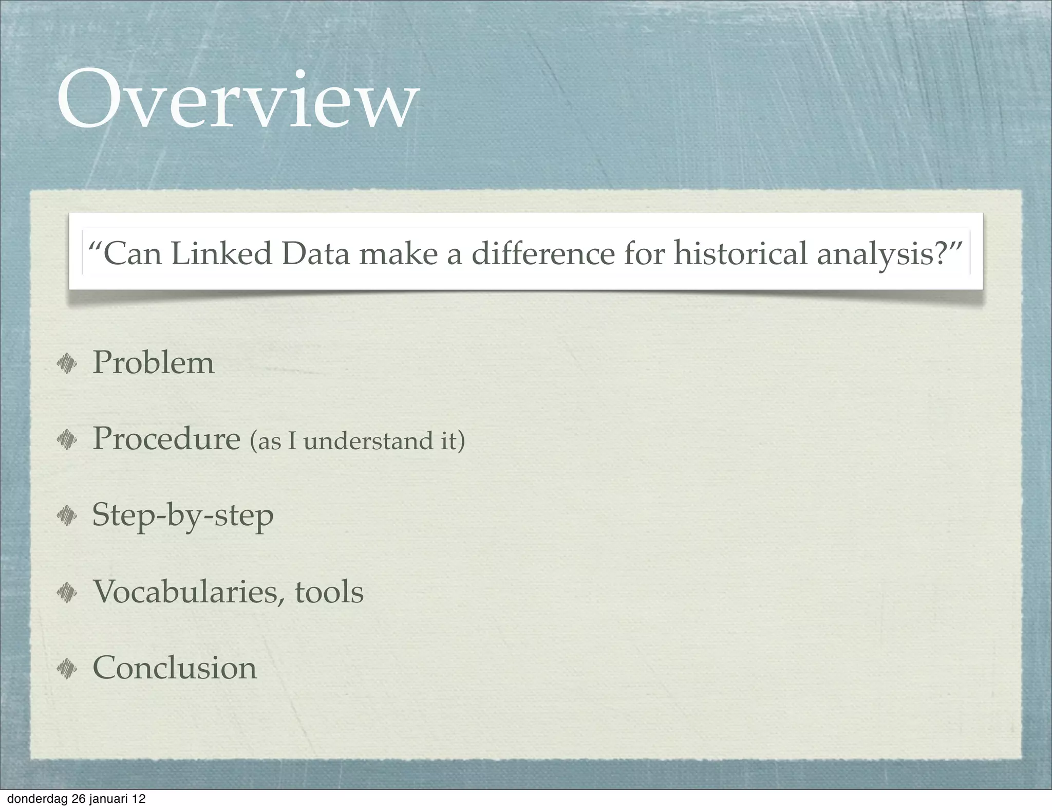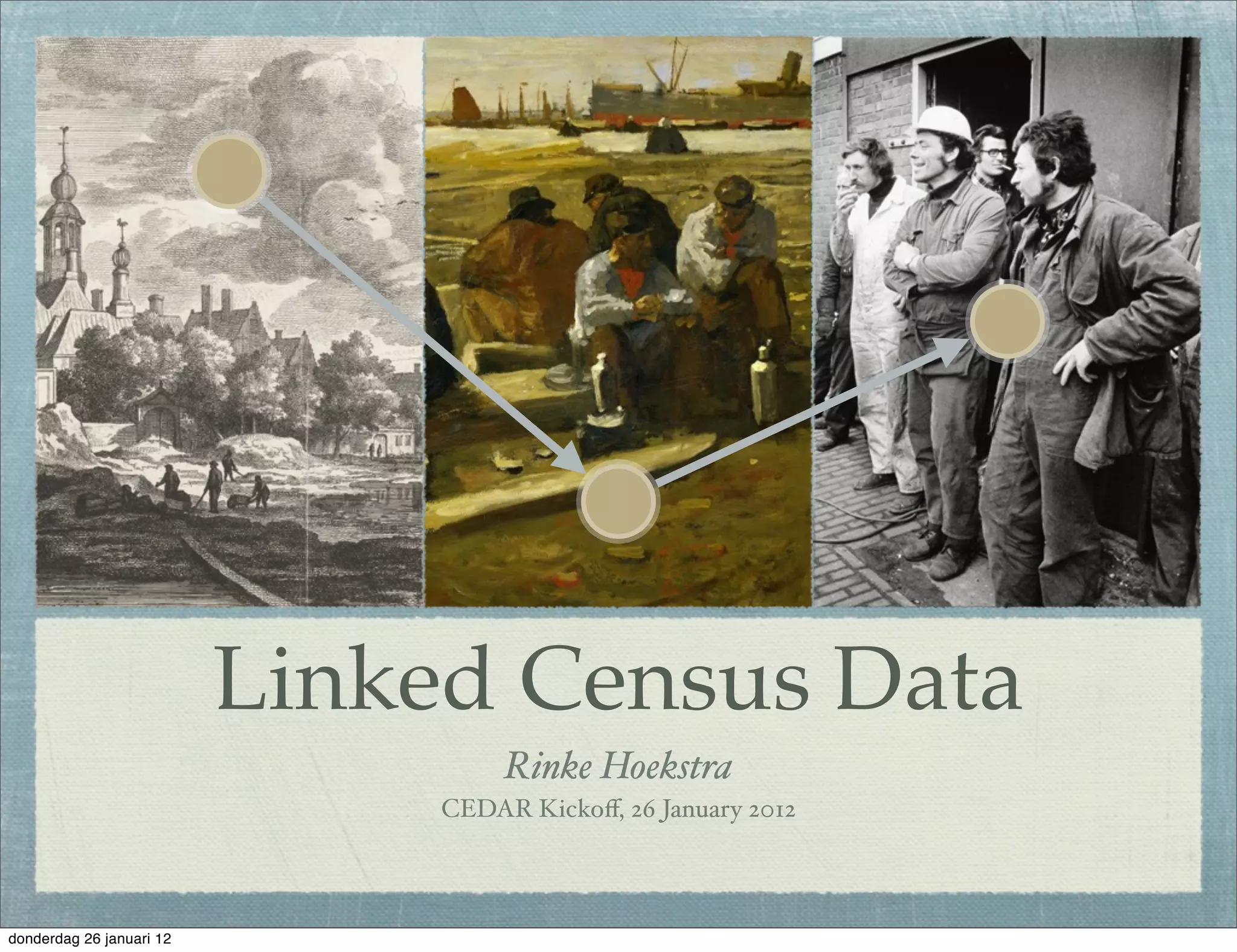 The document discusses the challenges and procedures involved in linking historical census data for analysis, highlighting issues like data structure, errors, and normalization. It explains the transformation from disparate Excel spreadsheets to a unified linked data model, emphasizing the use of RDF and SPARQL for data querying and visualization. The advantages of this approach include improved data integration and documentation, while potential downsides involve performance and limited support for certain operations.