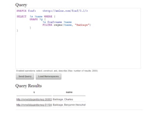 The document discusses the integration of linked data into the collections management systems at the Science Museum to enhance data connectivity and extensibility. It outlines the challenges faced, such as identifiers stability and the need for a mindset change regarding linked data's capabilities. The future direction emphasizes leveraging existing data sources and expanding to linked open data through various ontologies and public APIs.