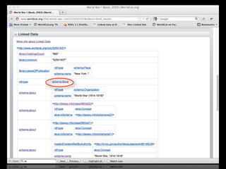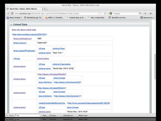 The document discusses how libraries can better connect their resources to the web of data through linked data and BIBFRAME in order to improve discovery of library materials. It notes that traditional library metadata and cataloging is no longer sufficient and that libraries need to start linking their resources instead of just copying records. By making resources discoverable through linked data, libraries have an opportunity to reassert their role as a source for all materials, both physical and digital.
