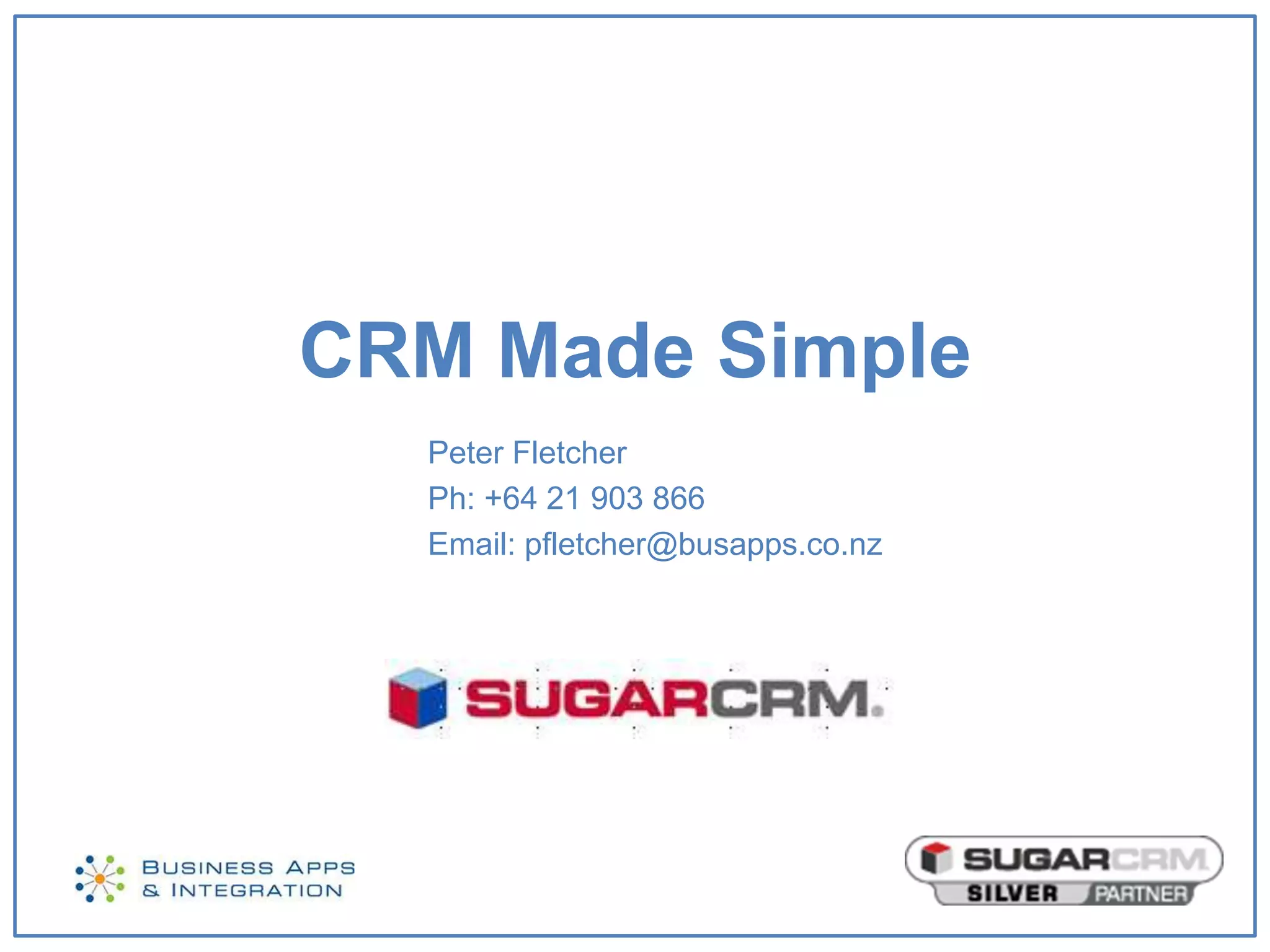 This document summarizes the benefits of implementing a Customer Relationship Management (CRM) system and introduces Peter Fletcher and his company BusApps as experts that can help set up a CRM. Some key benefits mentioned are increasing sales productivity, improving customer service, gaining better visibility and reducing costs. BusApps takes a proven approach to implementing SugarCRM in order to provide value within weeks by addressing business issues and goals.