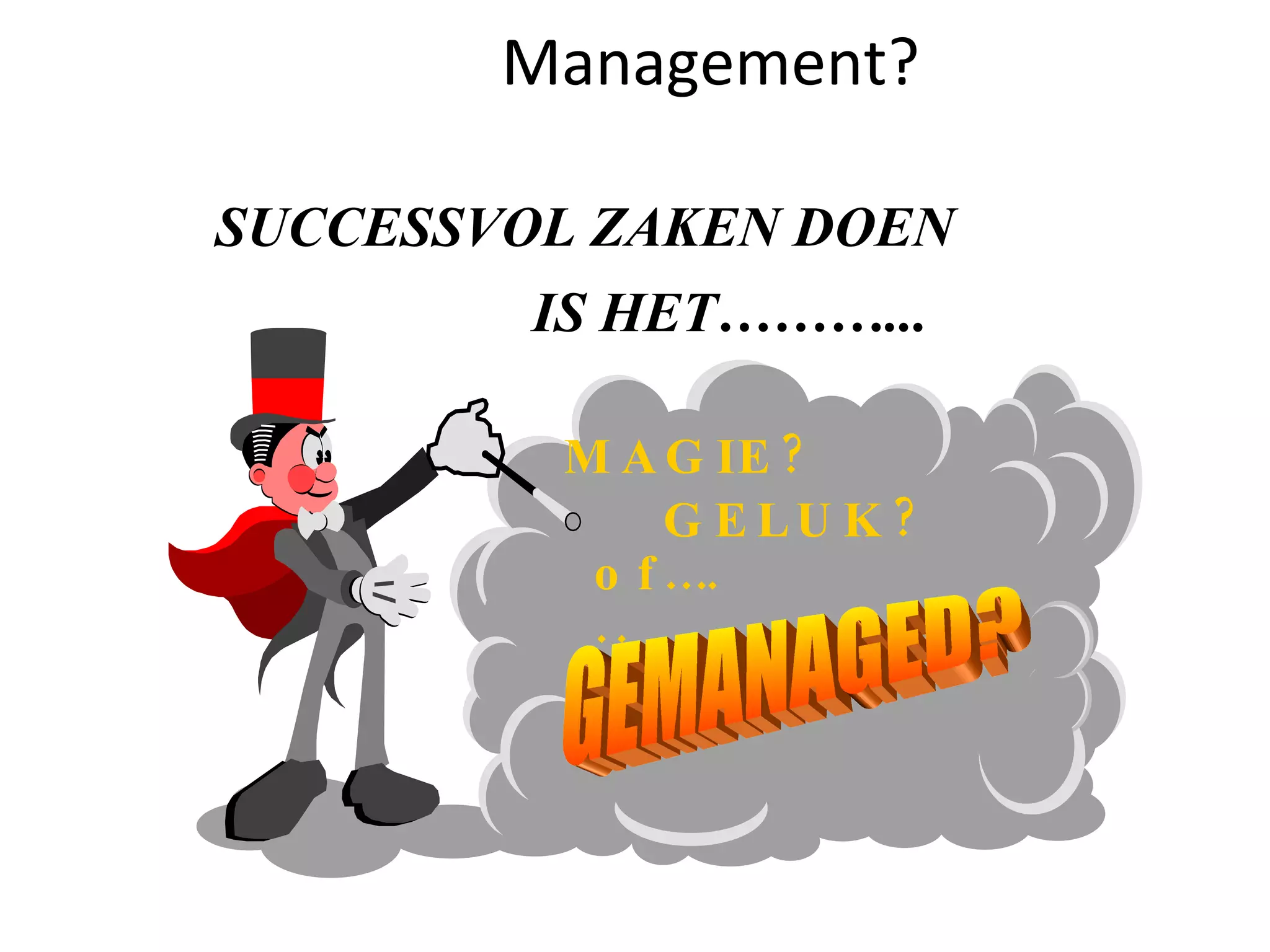 Hoge kwaliteitsmanagement... Eenstatement ...het is meer... De kwaliteit van het management … dan ... Het managen van de kwaliteit. Wat moet er geregeld zijn om van professioneel en kwalitatief management te kunnen spreken?