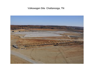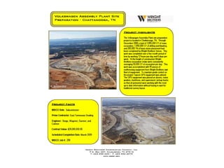 The document discusses Wright Brothers' capabilities at the Volkswagen site in Chattanooga, TN. Wright Brothers prides itself on getting jobs done and done right. It has the equipment and capabilities to move large amounts of excavation quickly. Wright Brothers has demonstrated these capabilities on previous projects and can do so again for future projects.