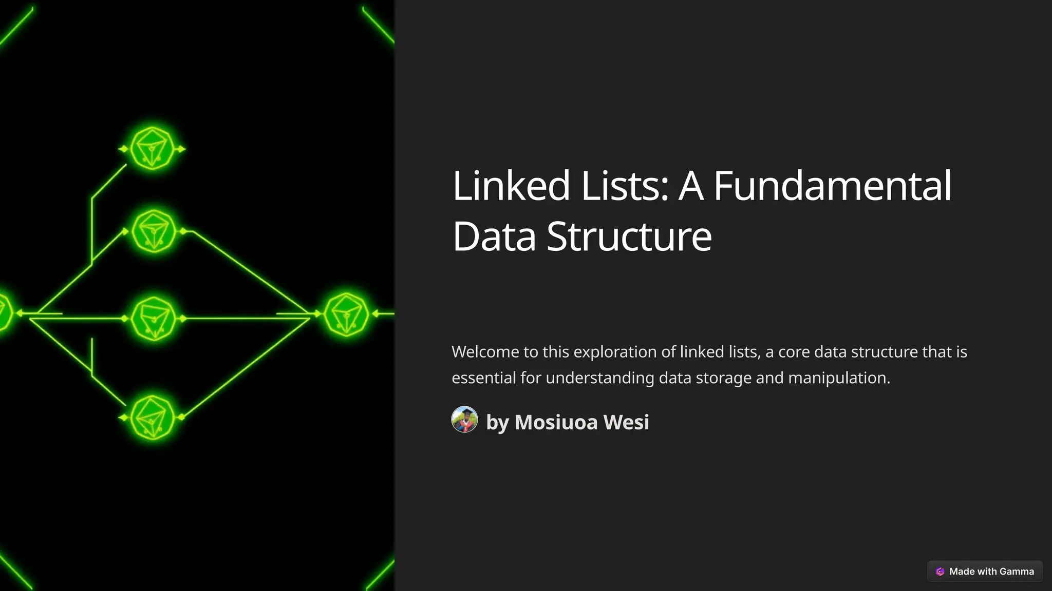 This document explores linked lists, a fundamental data structure that allows dynamic memory allocation and efficient insertion and deletion. It discusses different types of linked lists including singly, doubly, and circular linked lists, as well as their operations, advantages, and disadvantages. Additionally, it highlights applications of linked lists in stacks, queues, graphs, and dynamic memory allocation.