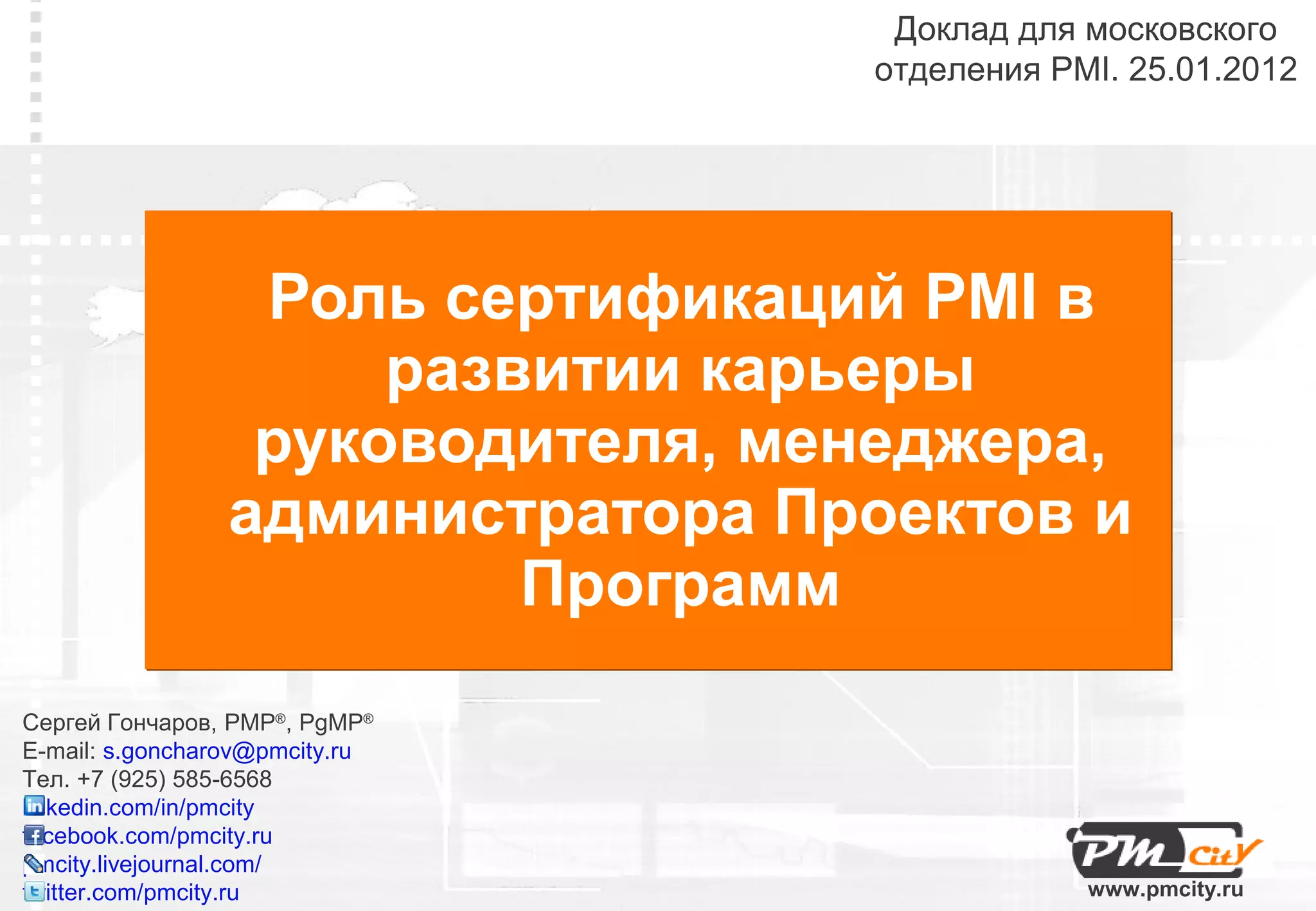 Доклад Сергея Гончарова для московского отделения PMI освещает важность развития компетенций для карьерного роста руководителей и менеджеров проектов. Он обсуждает различные аспекты компетенций, их примеры, способы их оценки и развития, а также ценность сертификации PMI для специалистов и компании-работодателя. В заключение представлена информация о программе менторства и поддержке профессионального роста в управлении программами.