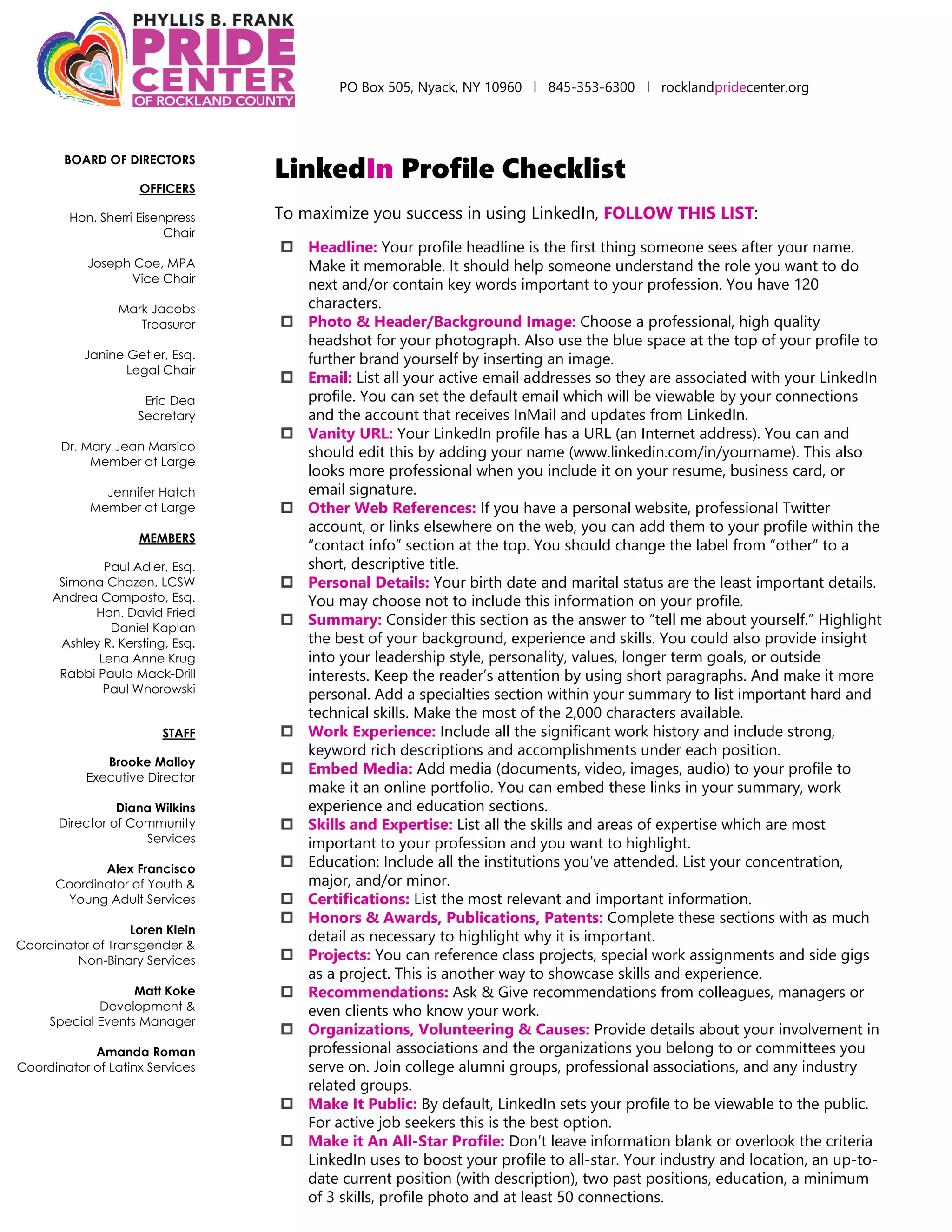 The document provides guidelines for optimizing a LinkedIn profile, emphasizing the importance of a strong headline, professional photo, and well-structured summary. It also offers a checklist for effective LinkedIn marketing strategies, such as connecting with others, engaging with content, and posting relevant updates. Additionally, it includes tips on posting timing and the types of content that can enhance visibility and engagement on the platform.
