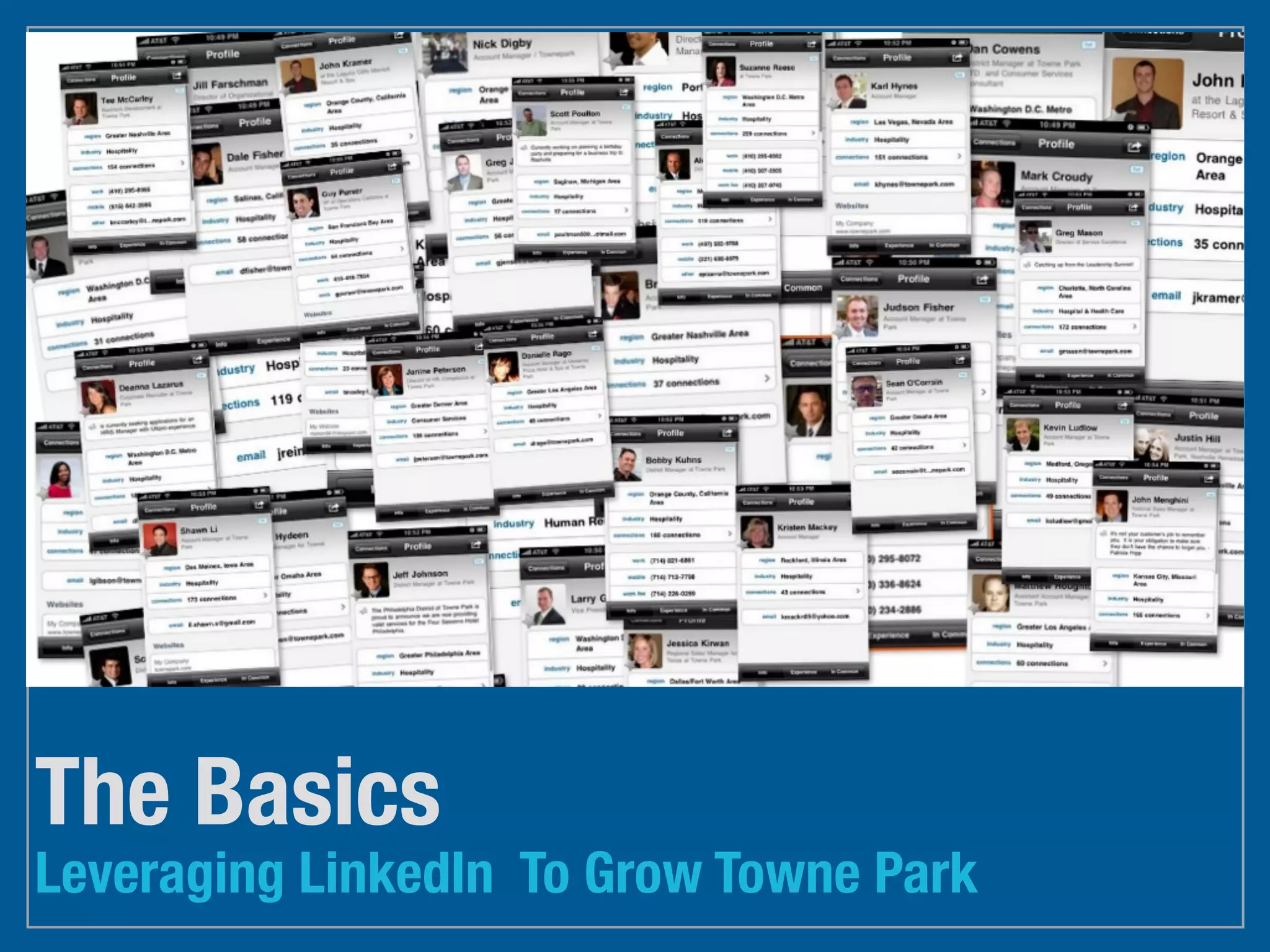 The document discusses using LinkedIn to grow a professional network and find business opportunities. It recommends completing your profile with a photo, building connections with colleagues and clients, and using LinkedIn's search and apps to find new contacts and stay informed. The tips suggest personalizing your profile and connection requests, and avoiding unprofessional content or contacting strangers.