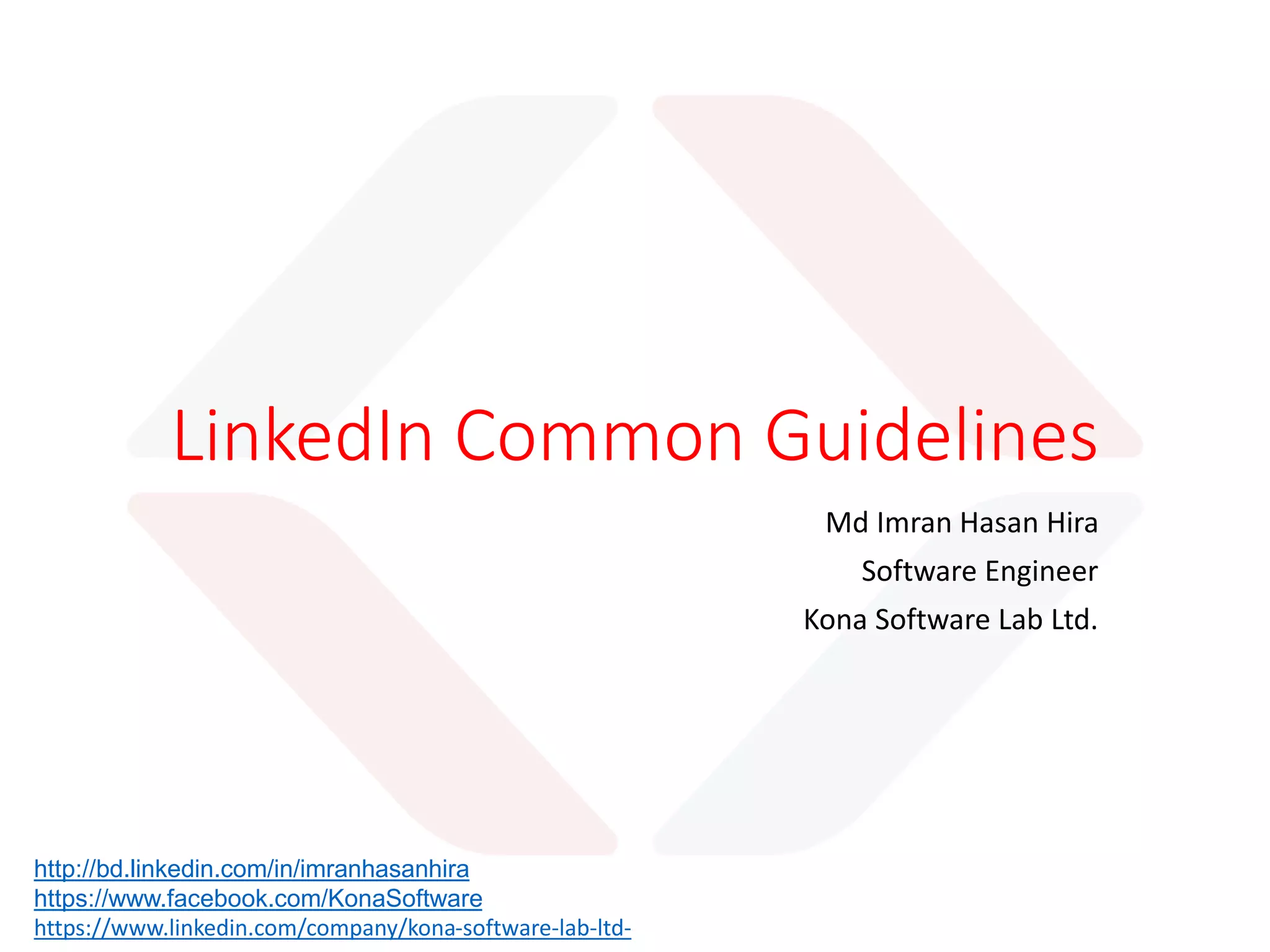 This document provides guidelines for creating a public profile URL on LinkedIn, authored by Imran Hasan Hira, a software engineer at Kona Software Lab Ltd. It includes step-by-step instructions from accessing the profile to saving the changes. The document also links to related social media profiles.