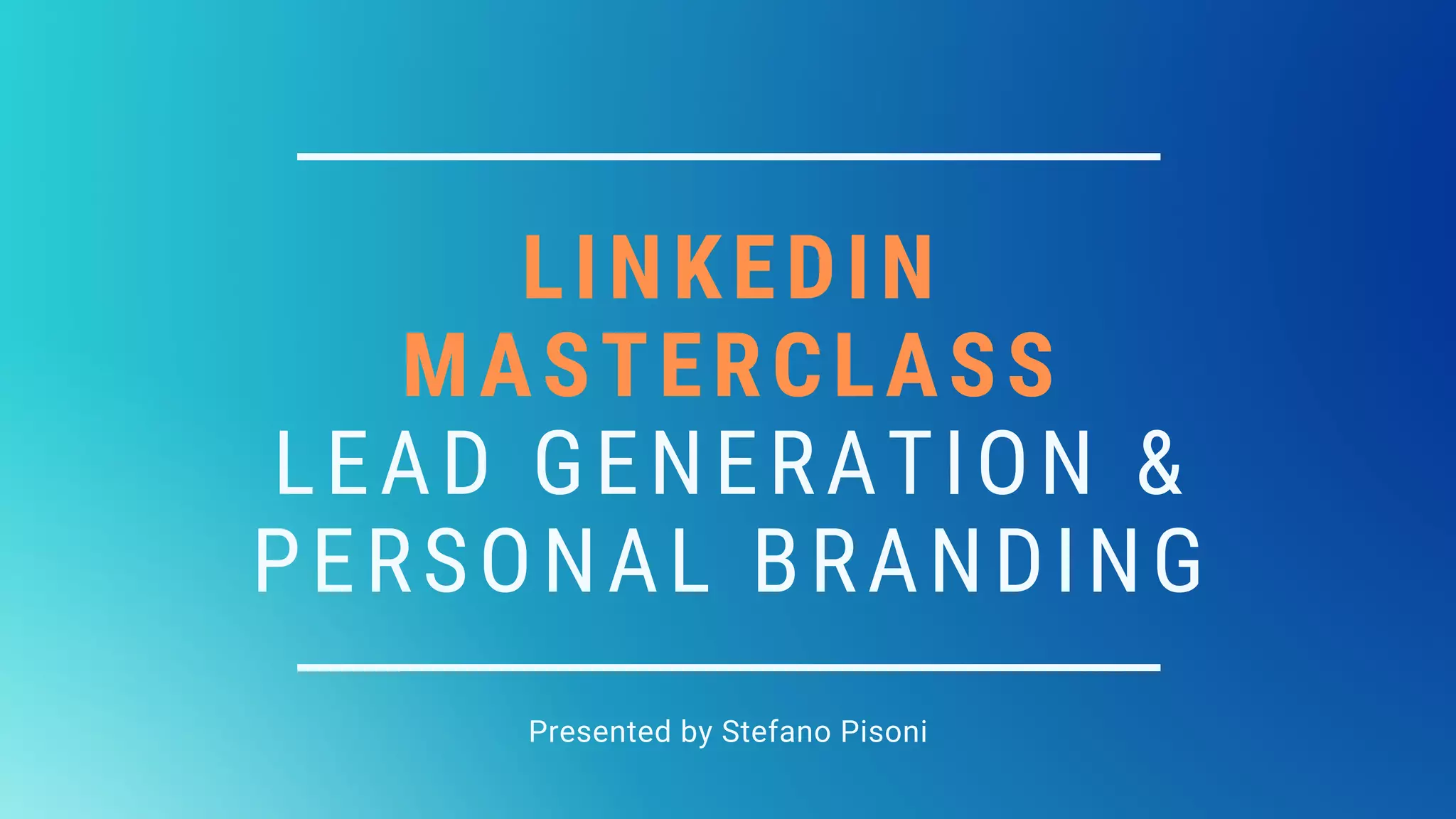 Il documento presenta un masterclass sulla generazione di lead e il personal branding su LinkedIn condotto da Stefano Pisoni, esperto di digital marketing e growth hacking. Pisoni illustra come ottimizzare il profilo LinkedIn per attrarre clienti senza bisogno di investire in pubblicità, fornendo strategie su SEO, automazioni e creazione di contenuti. Inoltre, viene offerto un corso, 'LinkedIn Advanced', per aiutare freelance e aziende a sfruttare la piattaforma per incrementare le connessioni e generare lead qualificati.