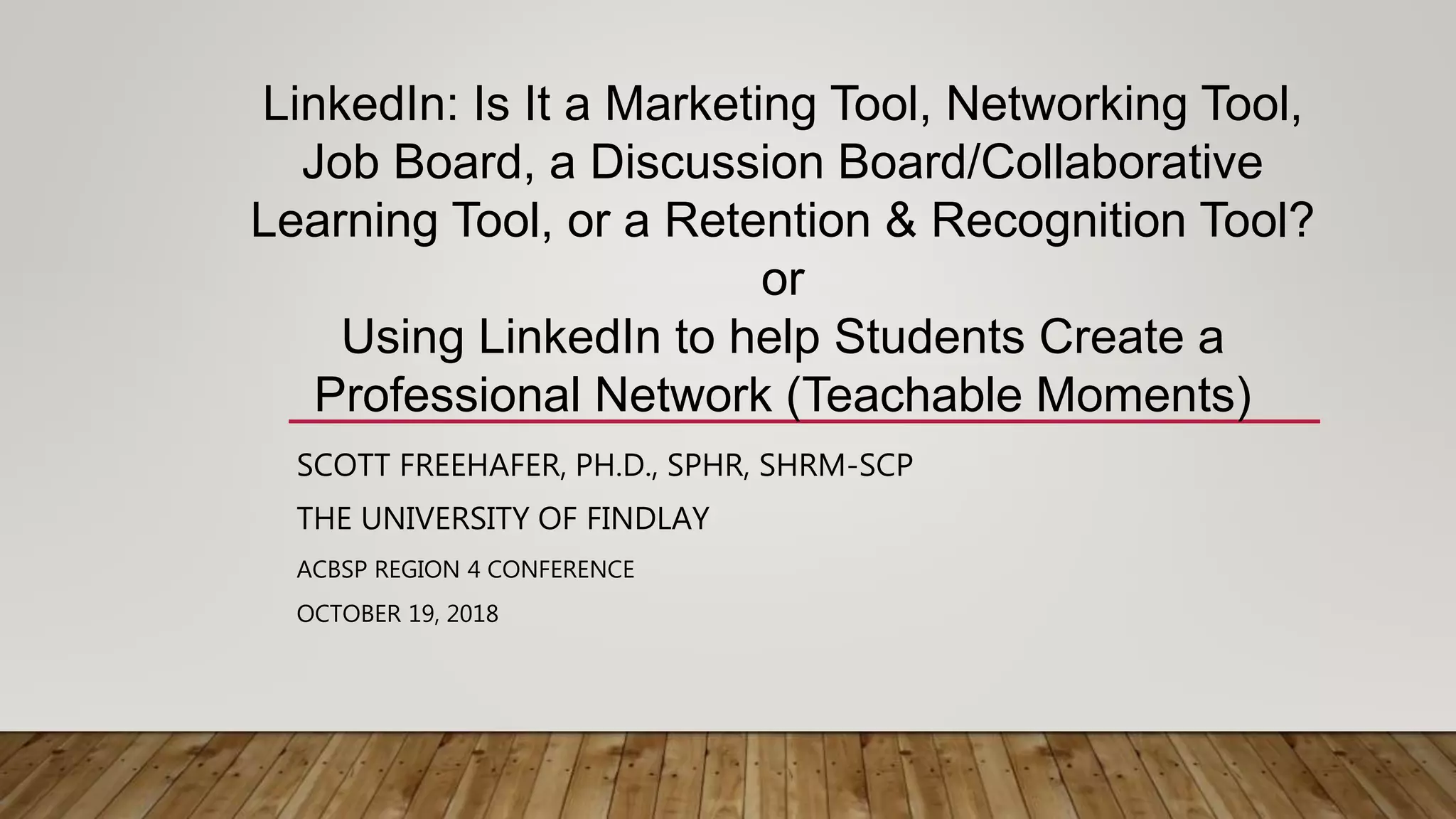 LinkedIn can be used as a marketing tool, networking tool, job board, discussion board, and tool for staying connected with students and alumni. It allows users to build their personal brand through a strong profile, connecting with others, posting relevant content, and participating in groups. The presenter encourages using LinkedIn to help students create professional networks and assess the quality of their online profiles and engagement on the platform.