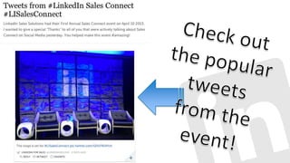 The document outlines key statistics about social selling and how sales professionals are leveraging social media and LinkedIn. It notes that 70% of buyers' journeys are completed before speaking to a salesperson, warm referrals increase sales success 2-4x, and the best reps position themselves as credible sources on social media within customers' networks. Over 90% of one company's sales staff uses LinkedIn to drive relationships and close deals. Leveraging LinkedIn Sales Navigator provides more quality leads and market share.