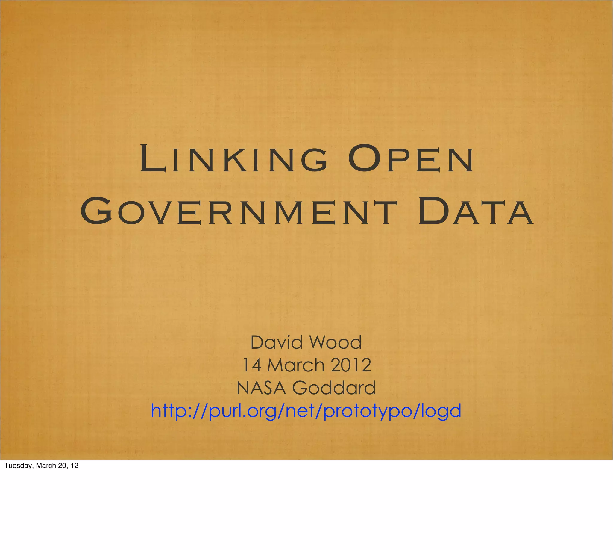 This document provides a summary of Linked Open Government Data. It discusses how government data is often separated into silos and how linking data using semantic web technologies can help remove these silos. It provides examples of government agencies that are starting to publish linked open data and the growth of the Linked Open Data cloud over time. It argues that linked open data can help governments become more transparent and allow others to reuse and combine data in new ways.
