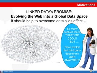 This document proposes quality measures for assessing linkset quality in linked data. It defines quality indicators, scoring functions, and aggregate metrics for evaluating linksets. Quality indicators examine aspects like entity types and counts. Scoring functions measure type coverage, completeness, and entity coverage within linksets. Interpretation tables help users understand scoring results and determine next steps. The measures specifically address linkset completeness for complementing datasets. The work contributes a first formalization and prototype for linkset quality assessment.