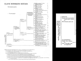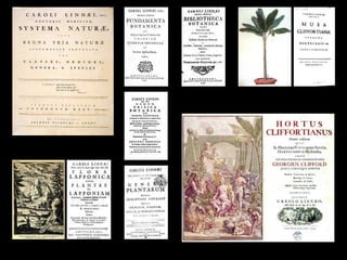 This document discusses Linnaeus and his contributions to biology and information processing. It covers three main topics: 1) Linnaeus popularized science through his work classifying and naming plants and animals; 2) As a pioneer of information processing, he developed systems for organizing vast amounts of data using numbers, names and paper records; 3) Some of the key systems he developed, such as binomial nomenclature, are still used in biology today.