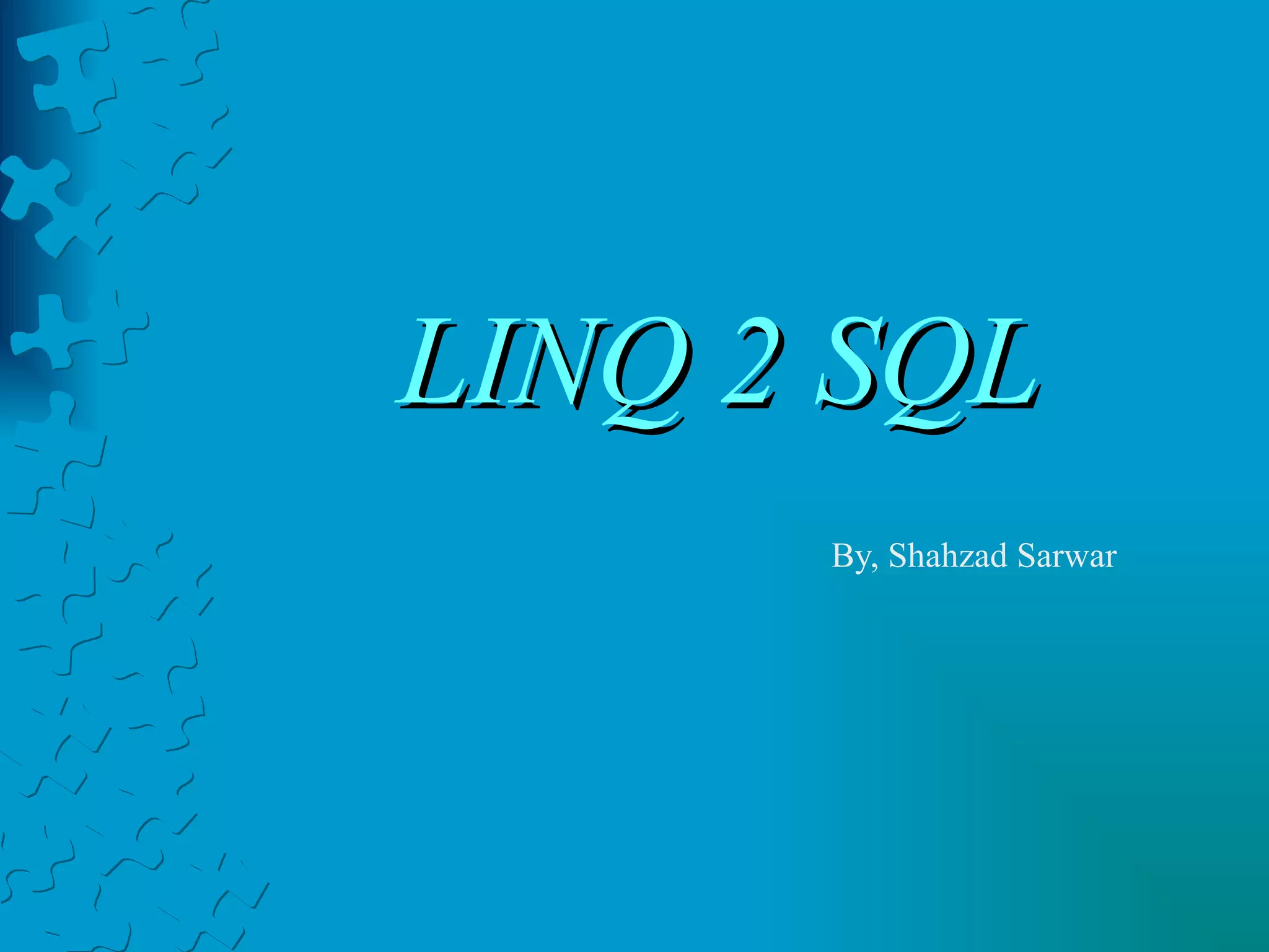 LINQ 2 SQL provides strongly-typed queries and results for relational databases. It consists of LINQ to Objects syntax to query data and tools to map classes and database tables. LINQ to SQL is an object-relational mapper that allows querying over SQL Server using LINQ. It provides an intuitive API and compile-time checking compared to other ORMs. Performance is improved by caching and optimized translation of LINQ queries to SQL.