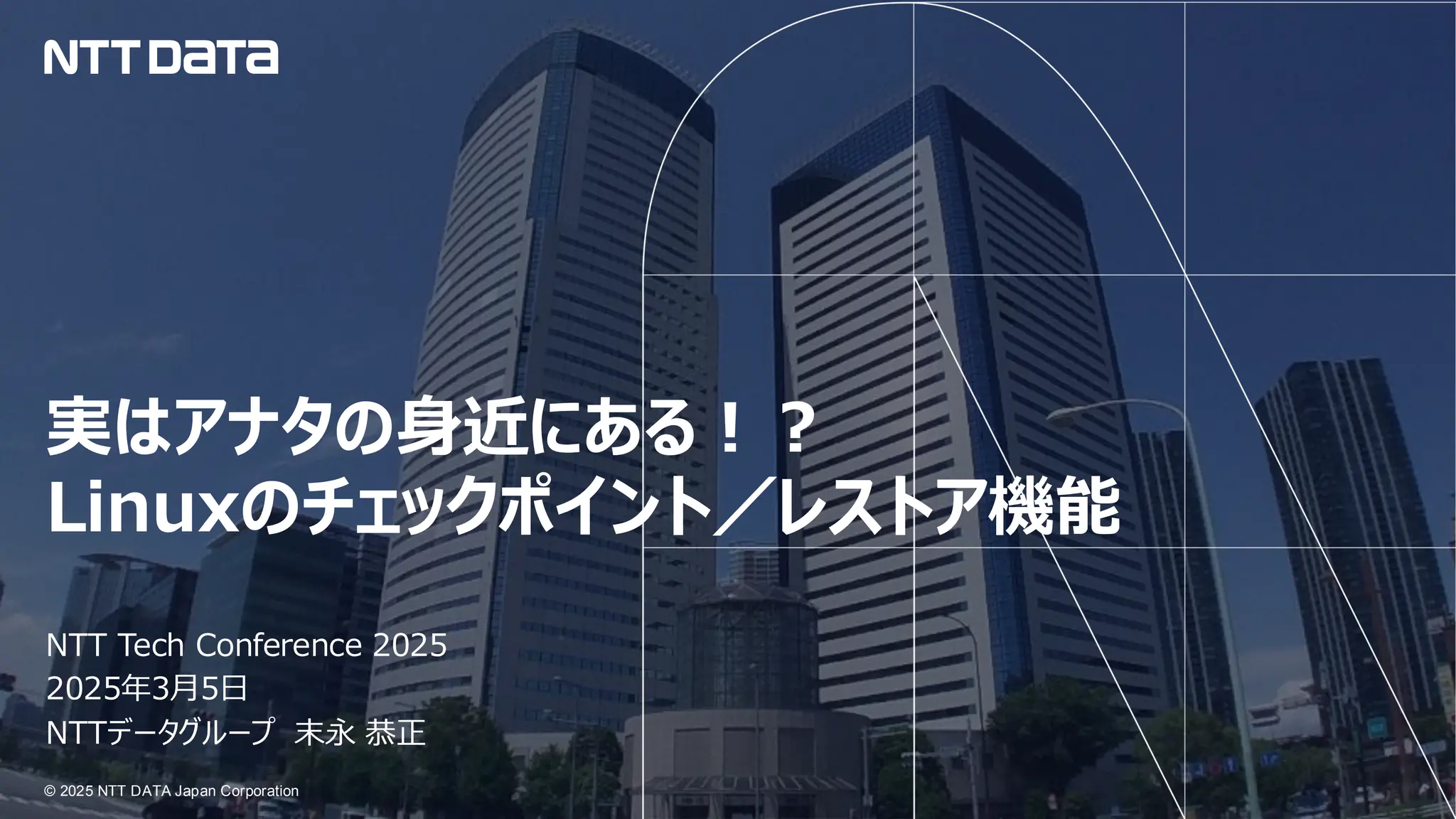 実はアナタの身近にある!? Linux のチェックポイント/レストア機能 (NTT Tech Conference 2025 発表資料) 2025年3月5日(水) NTTデータグループ Innovation技術部 末永 恭正