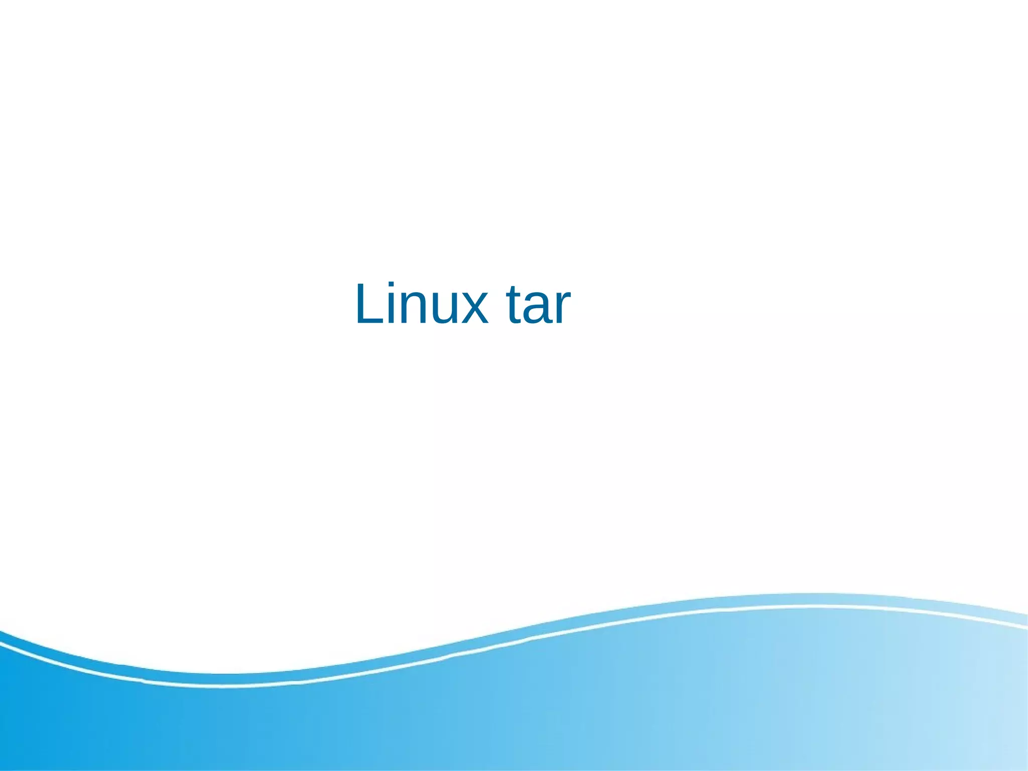 Tar is used to archive and compress files and directories in Linux. It can be installed using yum or apt-get depending on the distribution. Tar creates archives with options like c for create and z for gzip compression. The split and cat commands can be used to split large tar files into parts and combine them. Sed is used for text editing and search/replace tasks in files. The useradd and group commands are used for user and group management like creating, modifying, and deleting users and groups.