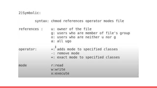 - The man command displays the manual for a command, including its name, synopsis, description, options, exit status, errors, versions, examples, and more.