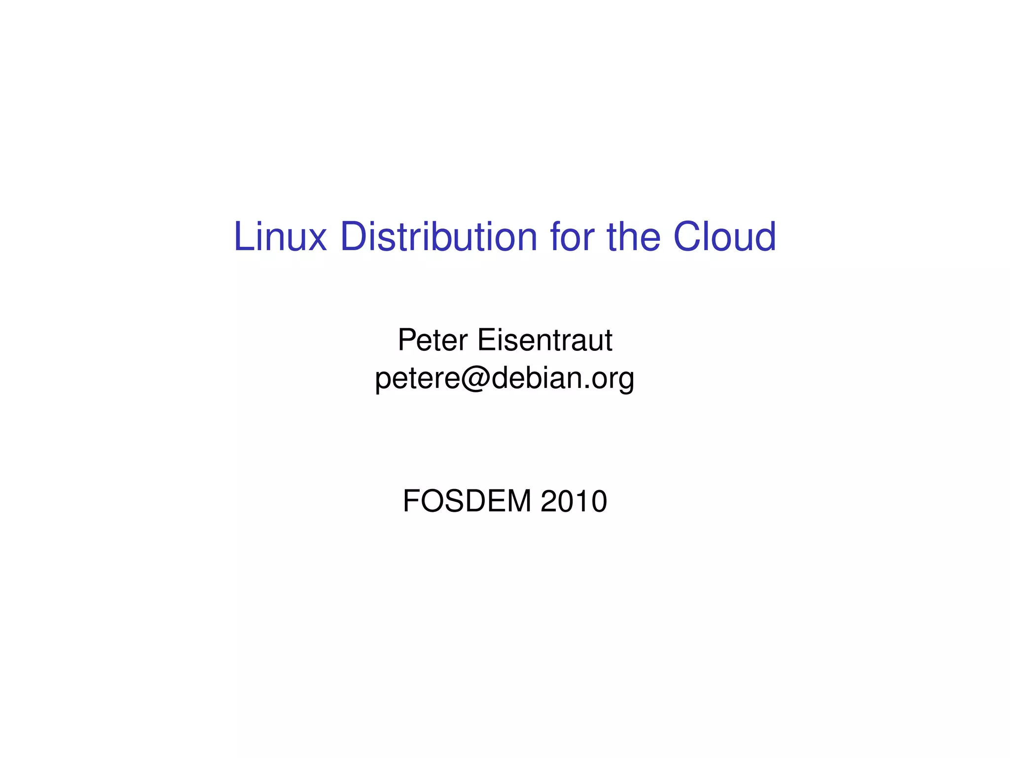 The document discusses the role of Linux distributions in the cloud, highlighting the need for integration of open software and free web services. It addresses current challenges such as lack of standards, data control, and the necessity for a protective licensing model. The presentation emphasizes the importance of maintaining freedoms in software usage and distribution while exploring potential solutions for better cloud service practices.