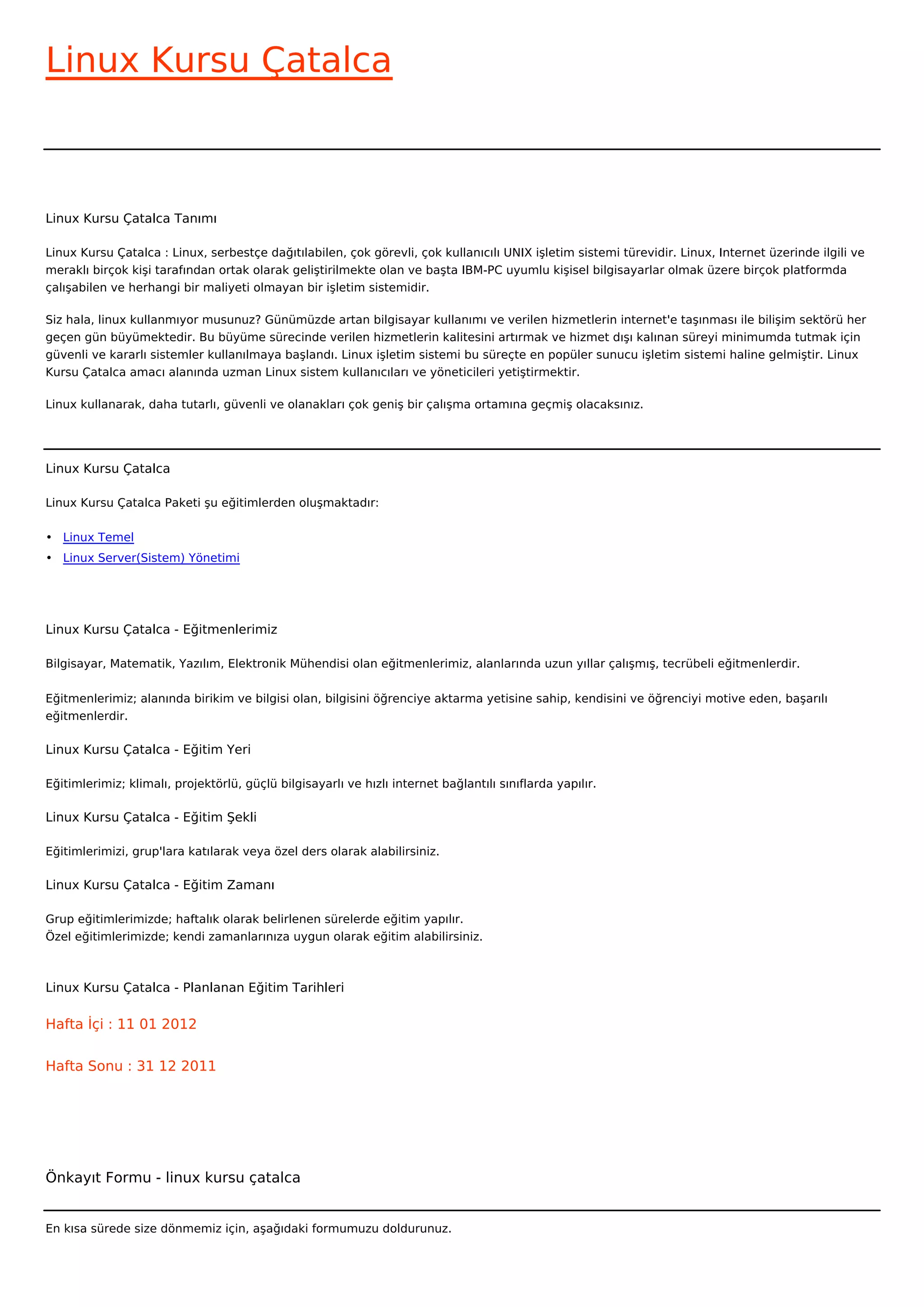 Linux Kursu Çatalca - Planlanan Eğitim Tarihleri