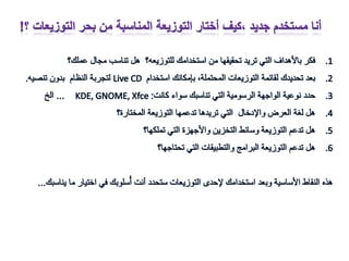 تمت مناقشة تاريخ نظام التشغيل لينكس ونشأته، حيث يعتبر نظام مؤسس على مبادئ يونكس. يوضح النص تفوق لينكس في مجالات مختلفة مثل الخوادم والأمن، مع مقارنة مع نظام تشغيل ويندوز. كما يتم تسليط الضوء على توزيعات لينكس الأكثر شيوعًا مثل Ubuntu وRed Hat.