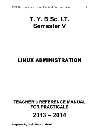 - Detailed instructions for Practical 1 on basic commands like cat, mkdir, cp, and editors like vi. It provides an example directory and file structure to create.