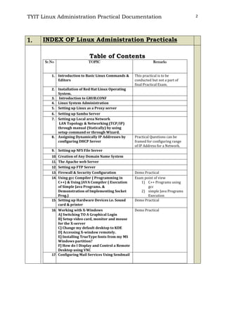 - An index of 17 practical topics ranging from basic Linux commands to configuring mail services.