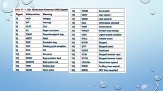 - The kill command terminates processes by sending a signal, with no arguments using the default SIGTERM signal.