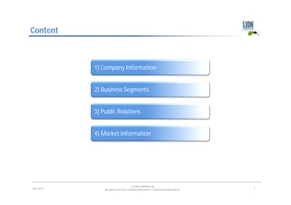 The document is a June 2012 presentation by LION E-Mobility AG, an e-mobility and battery company. It outlines the company's business segments, which include battery testing, design and prototyping, battery management systems, and simulations. It also discusses the company's network and partnerships with universities, its facilities for battery testing, and market forecasts for growth in electric vehicles and battery testing.