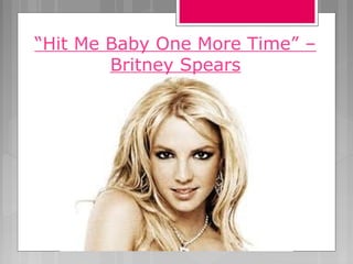The student chose to lip sync to "Hit Me Baby One More Time" by Britney Spears for their media studies project because the lyrics are simple and it is a well-known song. They filmed themselves and a partner lip syncing together, then individually lip syncing the same sections. They are using the project to become familiar with the video editing software Premiere through trial and error. So far the positives are that the project was entertaining while teaching them skills, and working with a partner helped counter each other's weaknesses.
