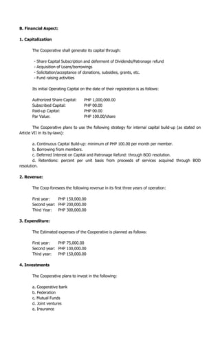 The document is an economic survey of the League of Independent People Aiming for Development Multi-Purpose Cooperative (L.I.P.A.D.MPC), formed by residents of Birmingham Village, Philippines. The cooperative aims to provide savings, retirement, financial education, job opportunities, and social/economic development for its members. It plans to strengthen members through income generation, self-sufficiency, and financial/social education. The survey details the cooperative's general information, strategic operational plan, projected membership growth, capitalization strategy, estimated revenues/expenses, necessary equipment and training, and organizational structure for its first three years of operation.