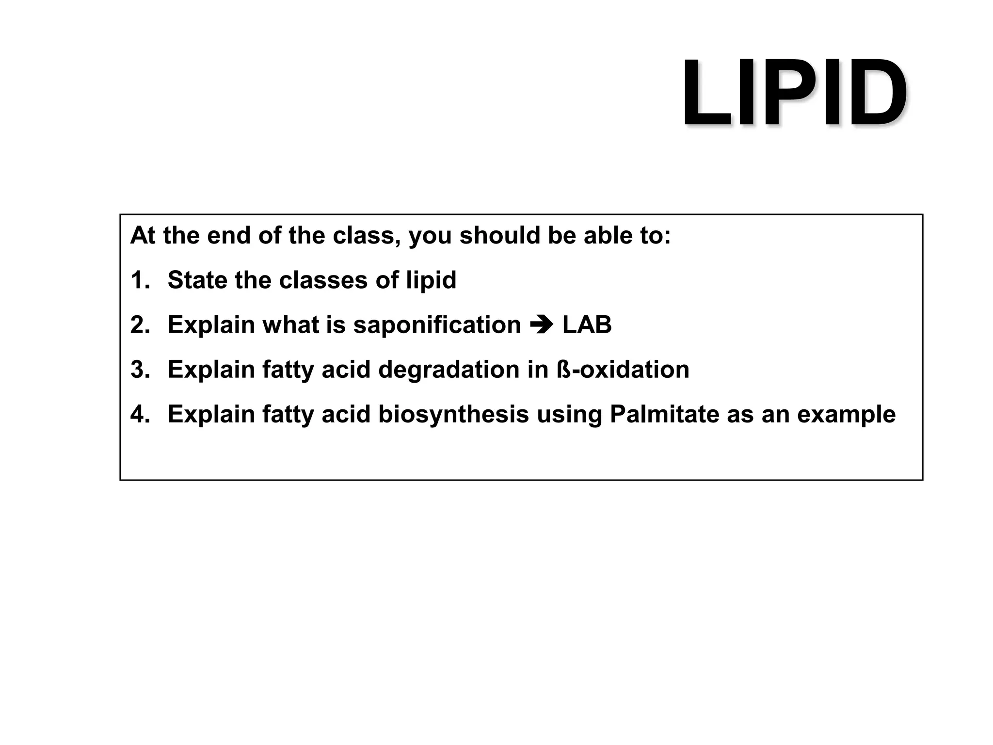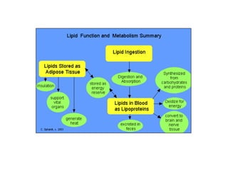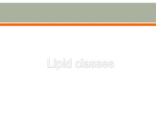 1. The document discusses lipid classes and metabolism. It defines the main lipid classes including fatty acids, triacylglycerols, phospholipids, sphingolipids, and isoprenoids.