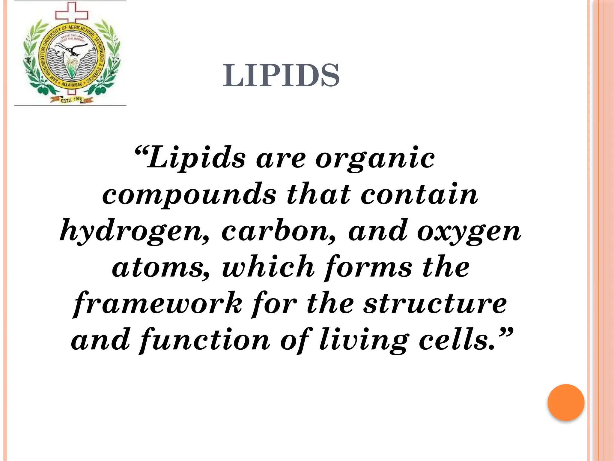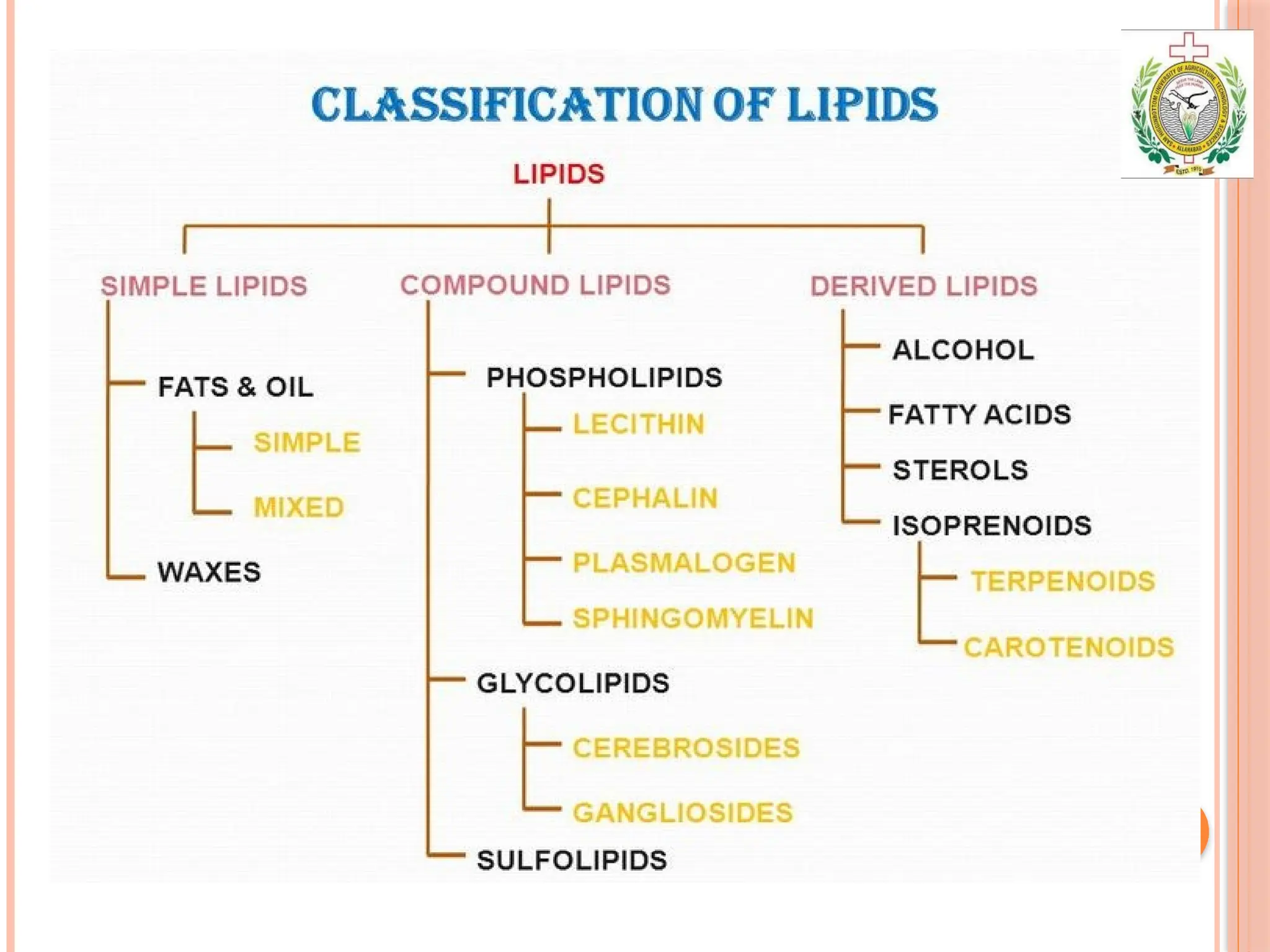 The document provides a comprehensive overview of lipids, describing them as nonpolar organic compounds essential for the structure and function of living cells. It categorizes lipids into simple, complex, and derived types, highlighting their energy-rich nature and significant roles in biological systems. Additionally, fatty acids are explained as building blocks of fats that serve various functions, including energy storage and hormone composition.